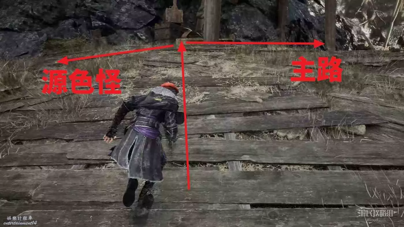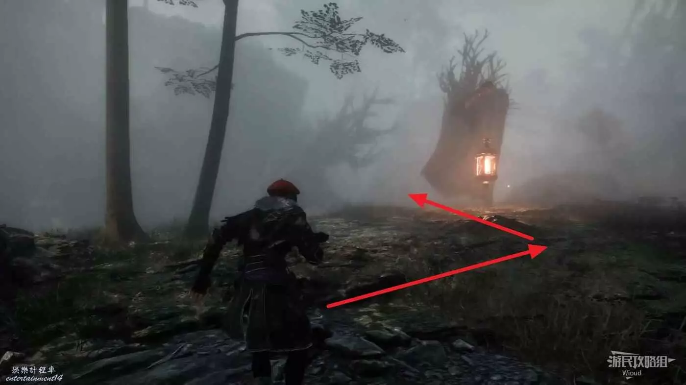轉頭走到前方開闊區域,左側有個拿燈籠的怪物,將其擊敗往左走到一個岔路。