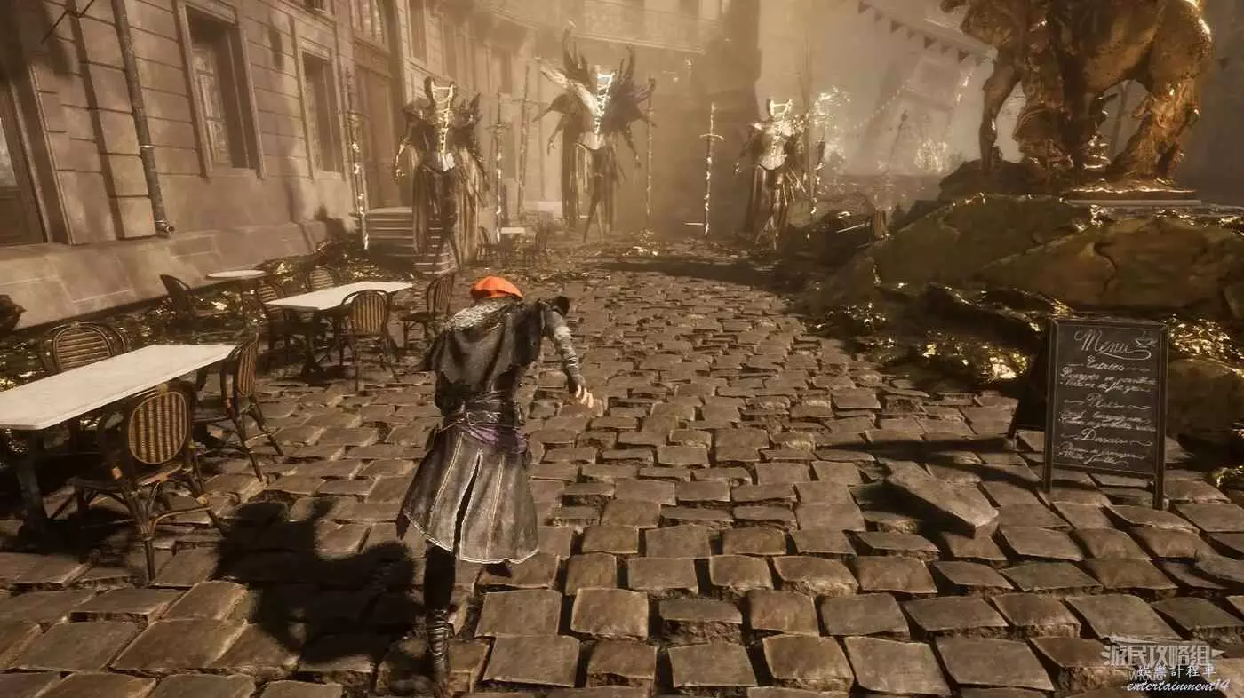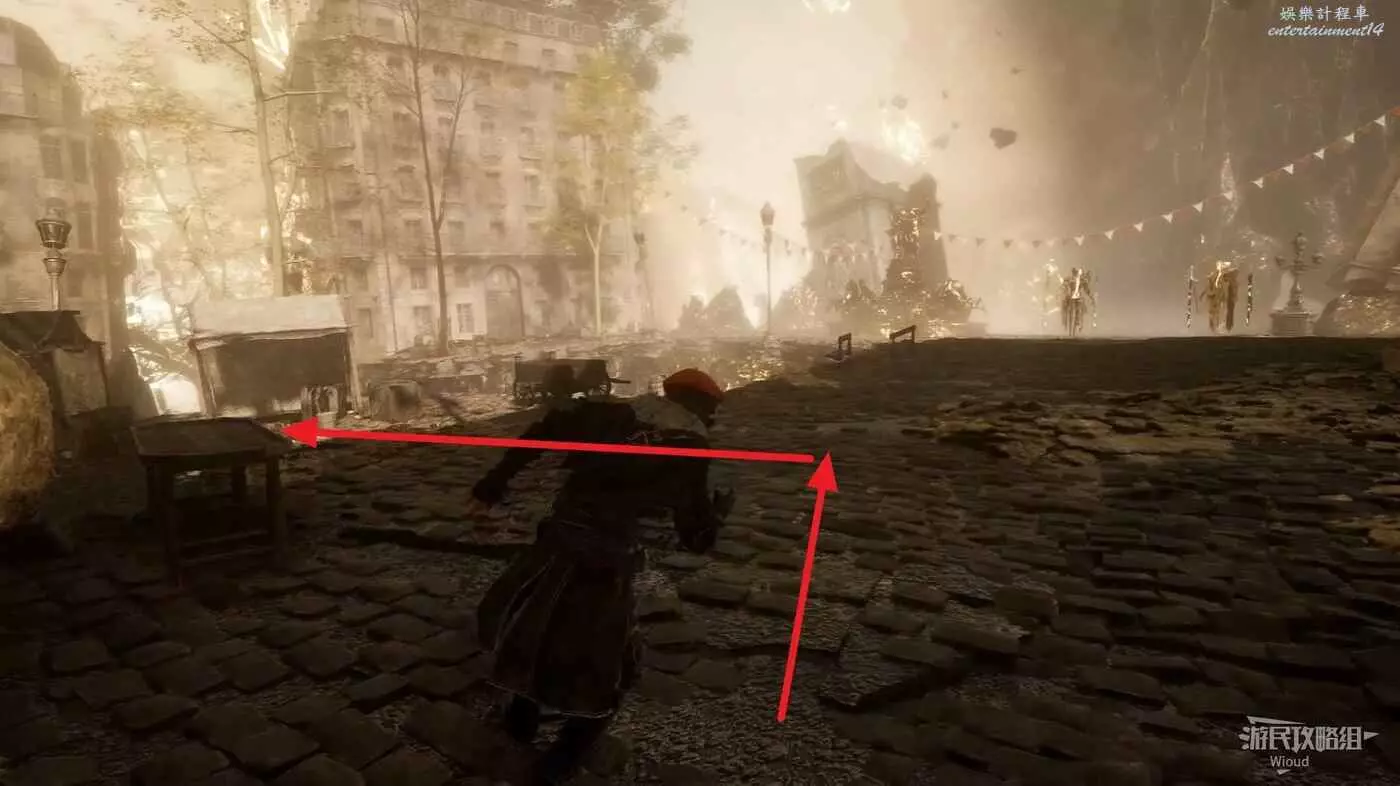 此處先貼著左牆直走,盡頭可撿到一個【靈光色】,回來沿著右側邊緣走到頭,使用鉤爪跳到右邊可找到精英怪【光與影】。