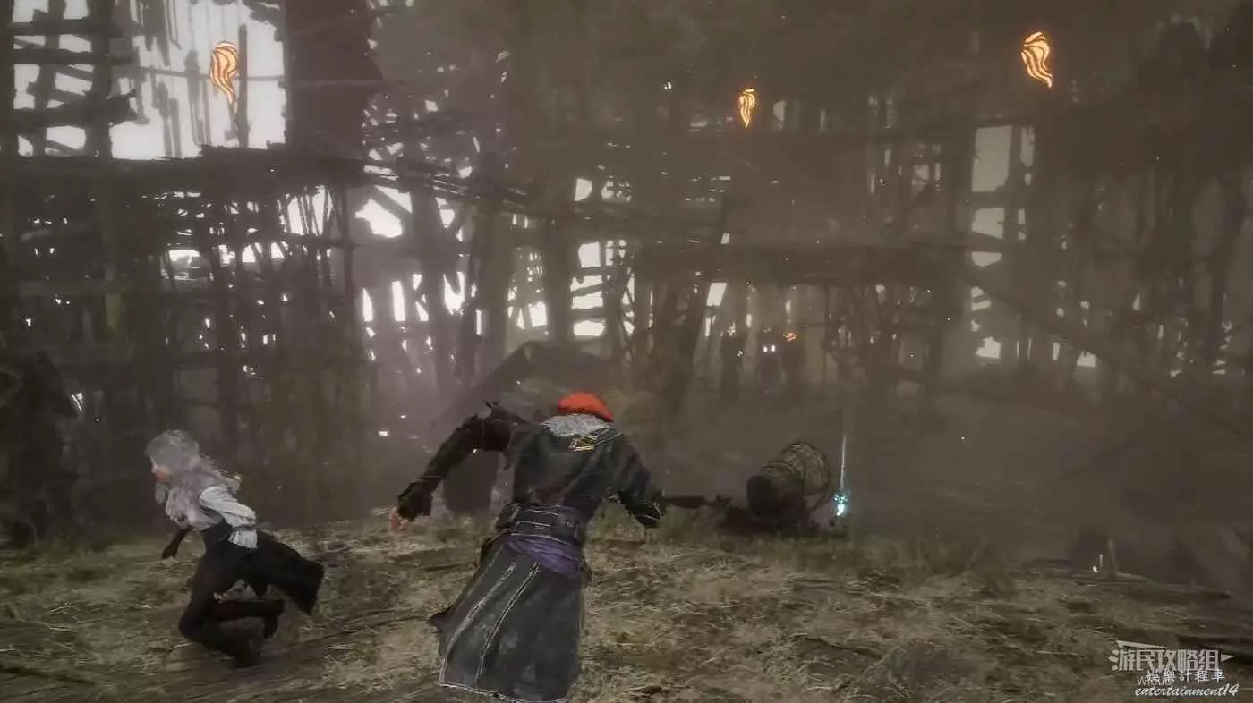 轉頭走到前方開闊區域,左側有個拿燈籠的怪物,將其擊敗往左走到一個岔路。