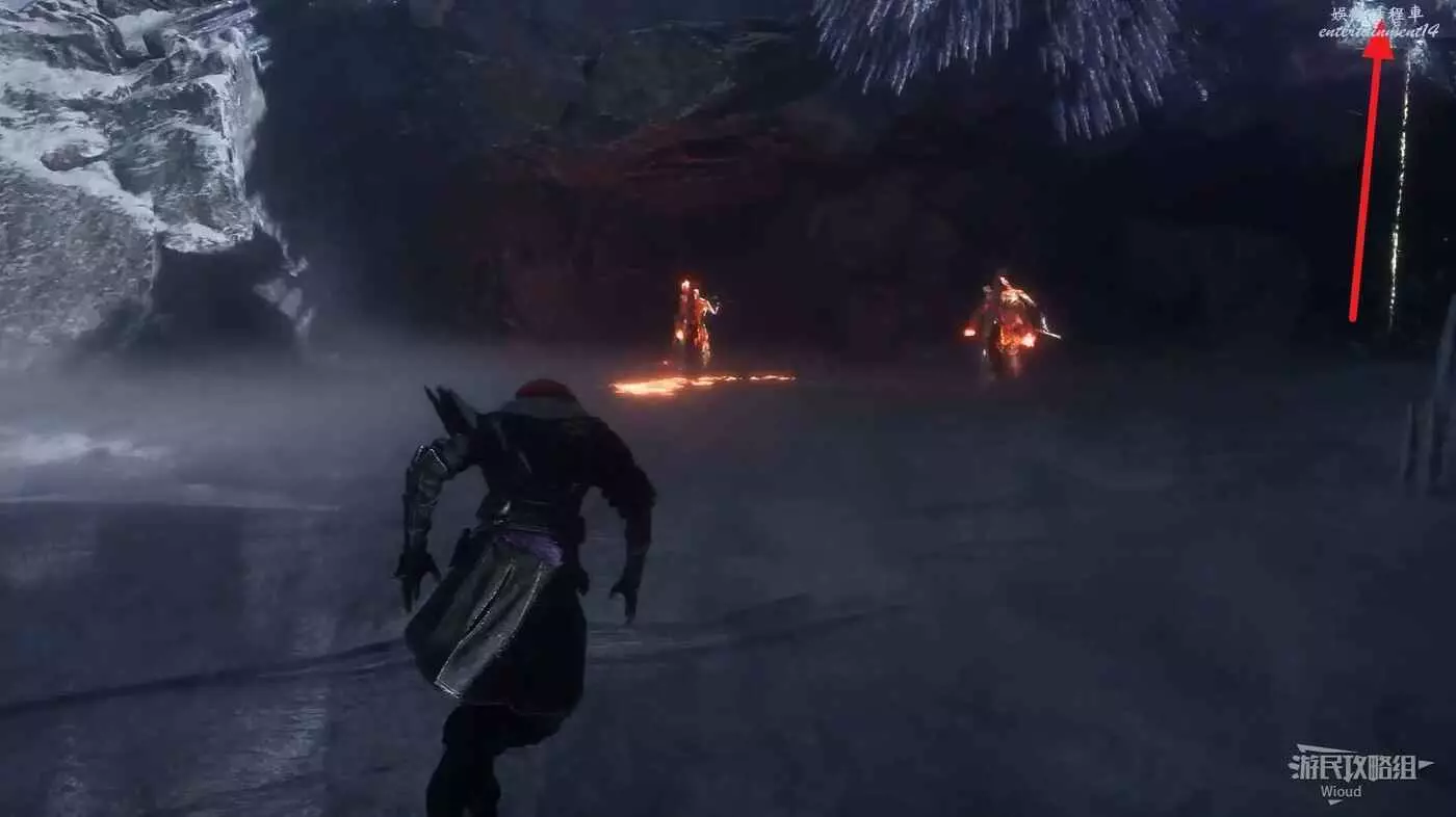 這個區域右側有個紅色怪物,將其擊敗可獲得符紋【以死引燃】,下圖怪物位置右側軌道處有個往下走的繩索。