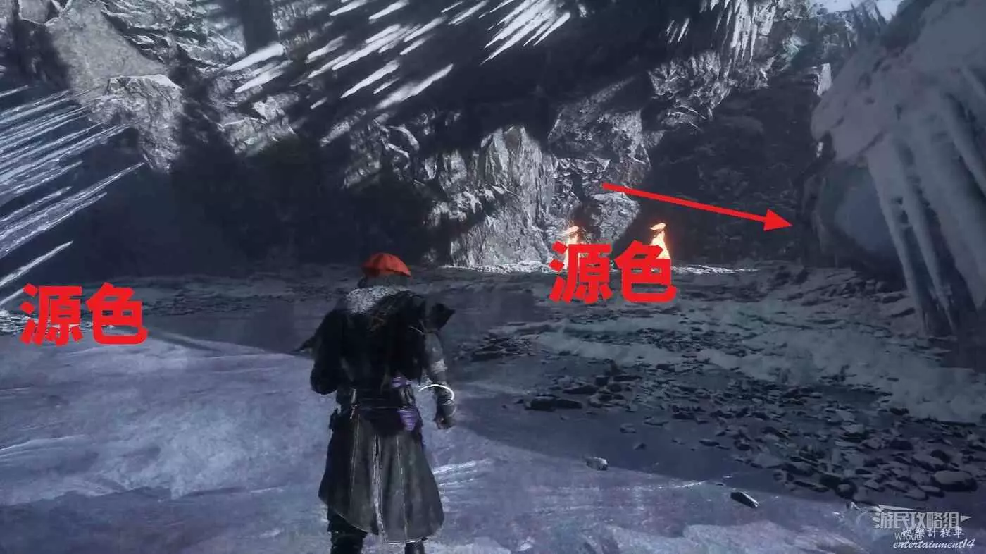 上層起始點左側與前方怪物旁有源色可拿,完事往怪物右邊走。