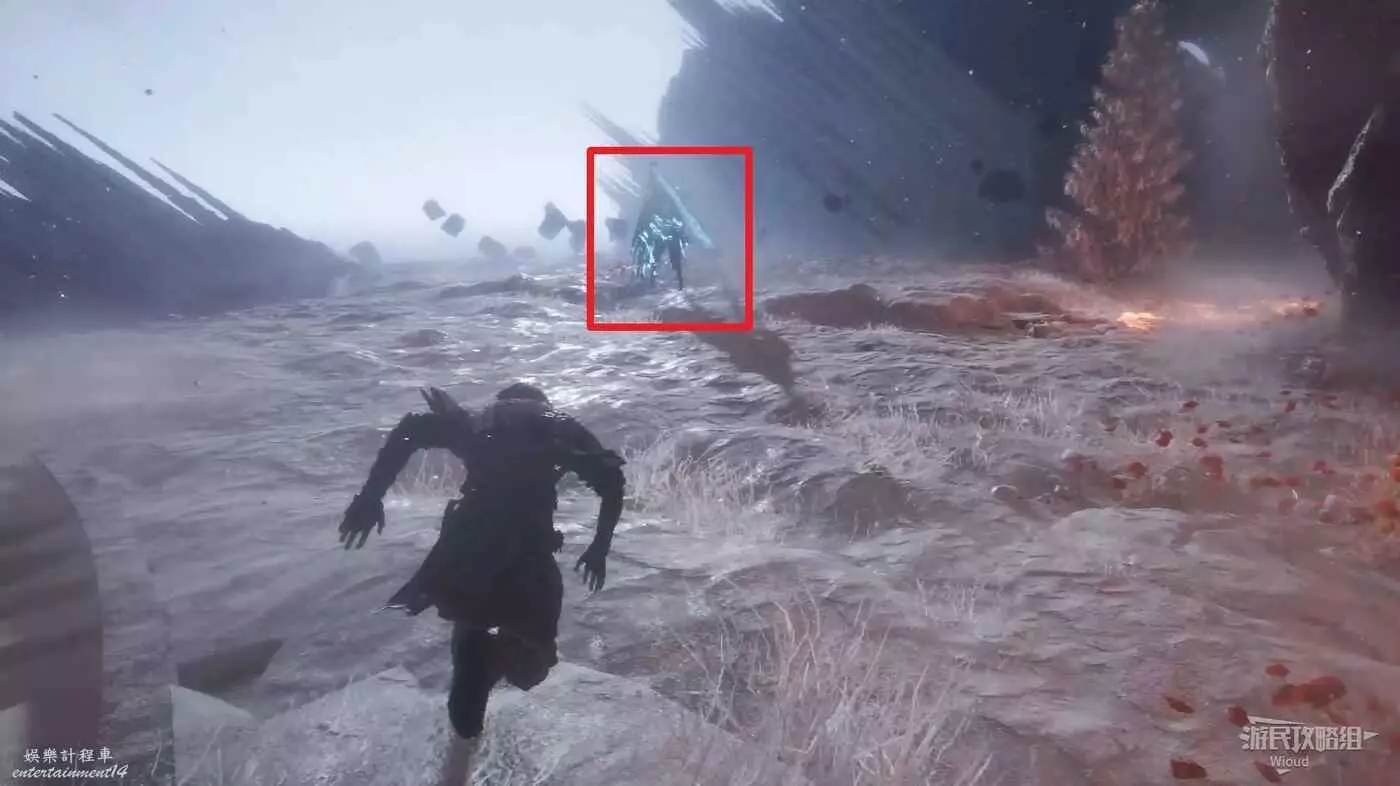 這個區域右側有個紅色怪物,將其擊敗可獲得符紋【以死引燃】,下圖怪物位置右側軌道處有個往下走的繩索。
