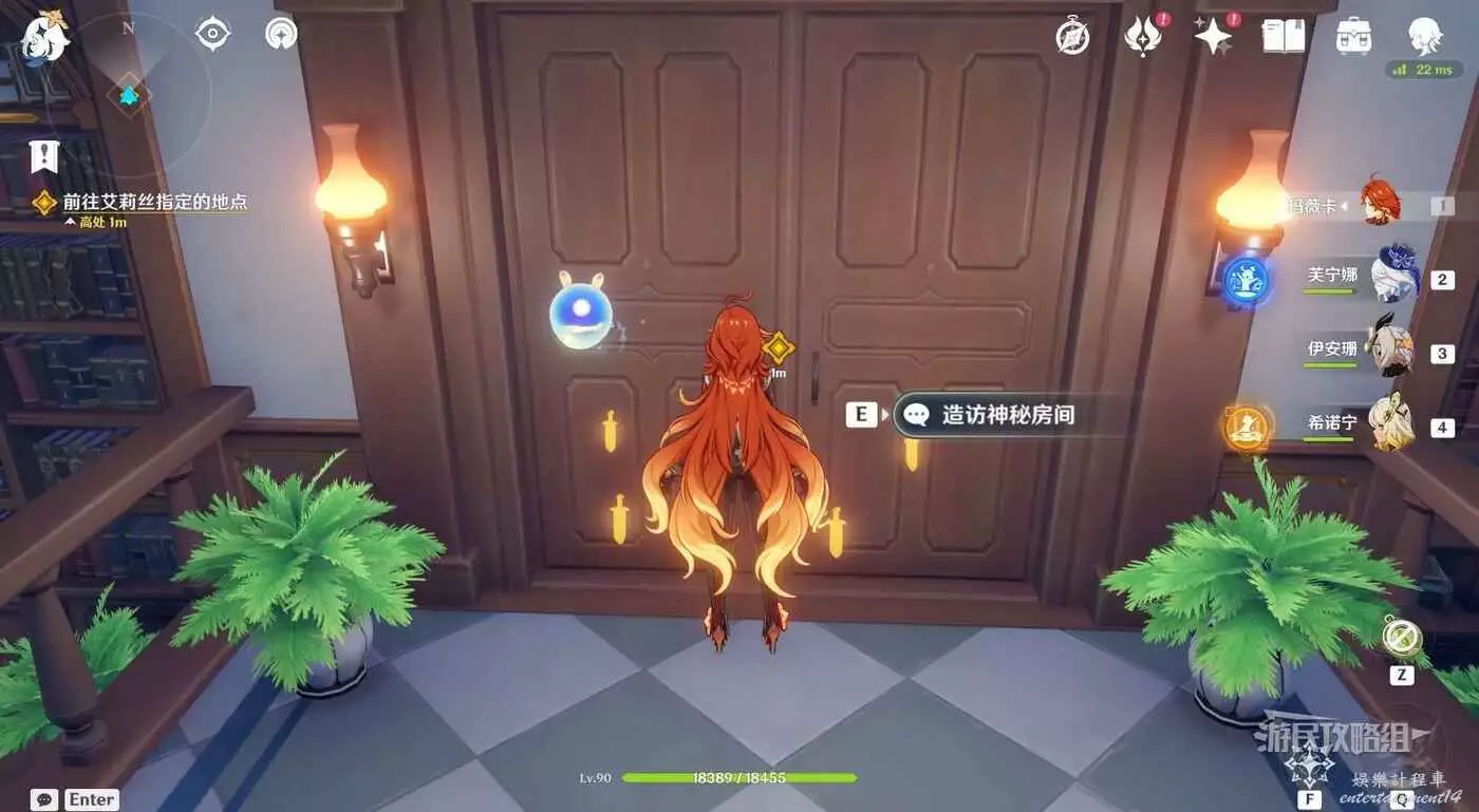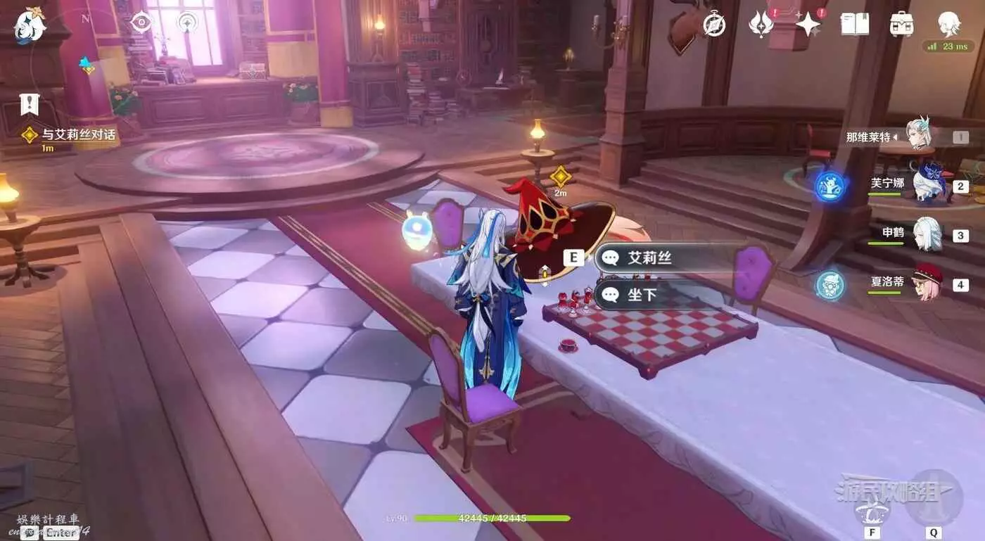 然後跟隨指引進入圖書館內的神秘房間參加魔女試煉,記得提前調整好戰鬥陣容,推薦元素為水元素和冰元素(第二階段需要凍結反應來打斷BOSS大招)。