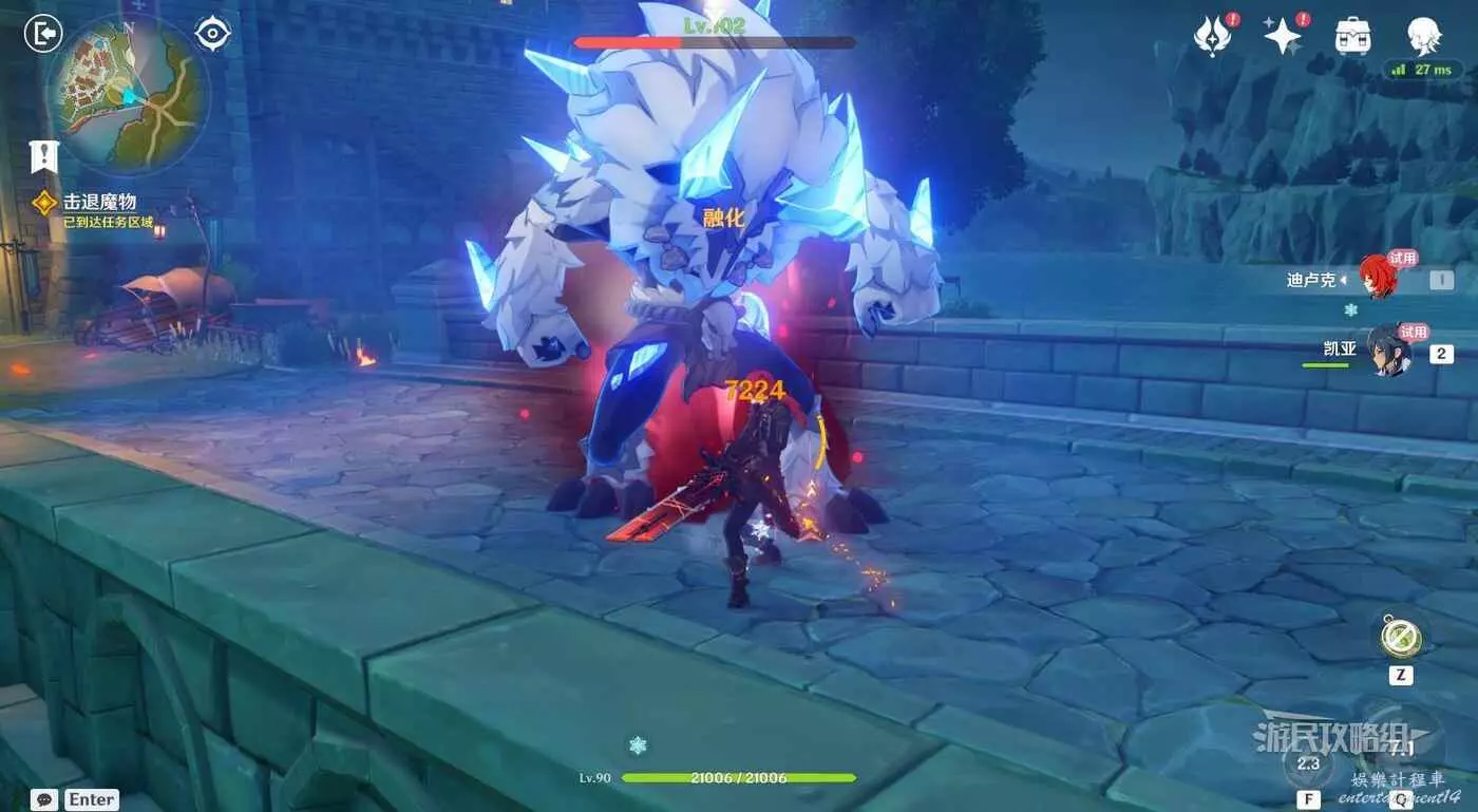 觸發劇情後,自動切換至迪盧克和凱亞的視角,使用迪盧克和凱亞擊敗敵人,自動觸發對話。