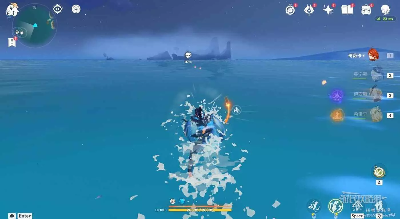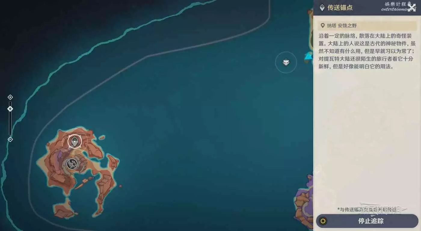 原神 (Genshin Impact) 深谷遺跡轄制機關位置及路線 7 5 月 2025-05-07 廣告 作者:瑞破受氣包 來源:遊民星空 5.6版本新地圖BOSS深谷遺跡轄制機關(秘源機兵·統禦械)的位置在納塔沃陸之邦的左下方海島上。 傳送到納塔沃陸之邦左下角的傳送錨點,前往左下方海邊。 使用瑪拉妮或在海邊變身鰭游龍,朝著BOSS所在位置的方向遊。 海上沿途可以拾取光點補充燃素。 順路開啟BOSS附近的傳送錨點。BOSS就在傳送錨點下方的平地上。