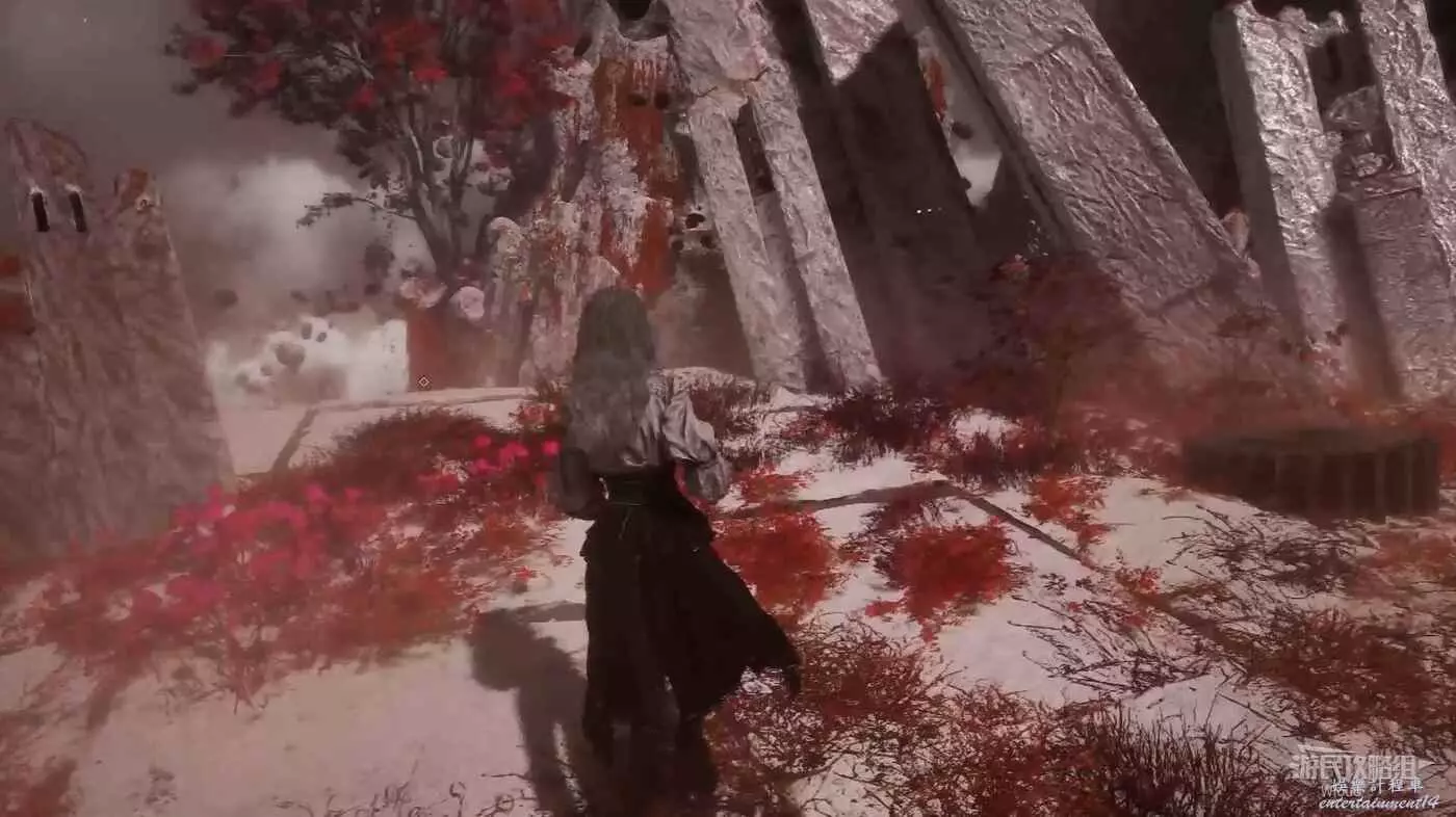 啟動第一個雕像,螢幕會上一層屎黃色濾鏡,周圍也會出現敵人。