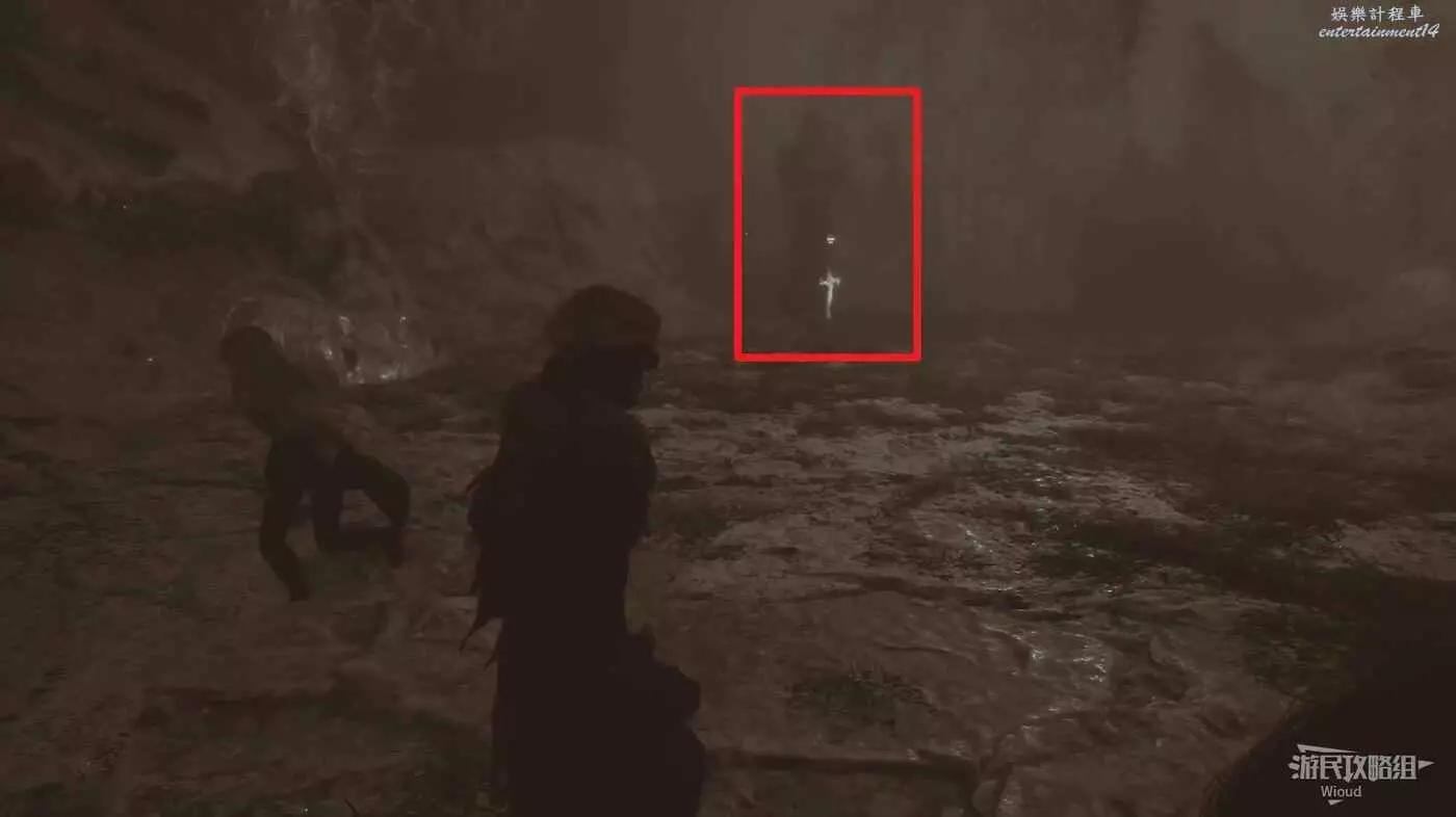 底部就是第三個雕像,雕像朝向對面還有道具可拿,啟動第三個雕像濾鏡恢復正常,從右側的隧道鑽出去返回【三劍合璧】旗幟位置。