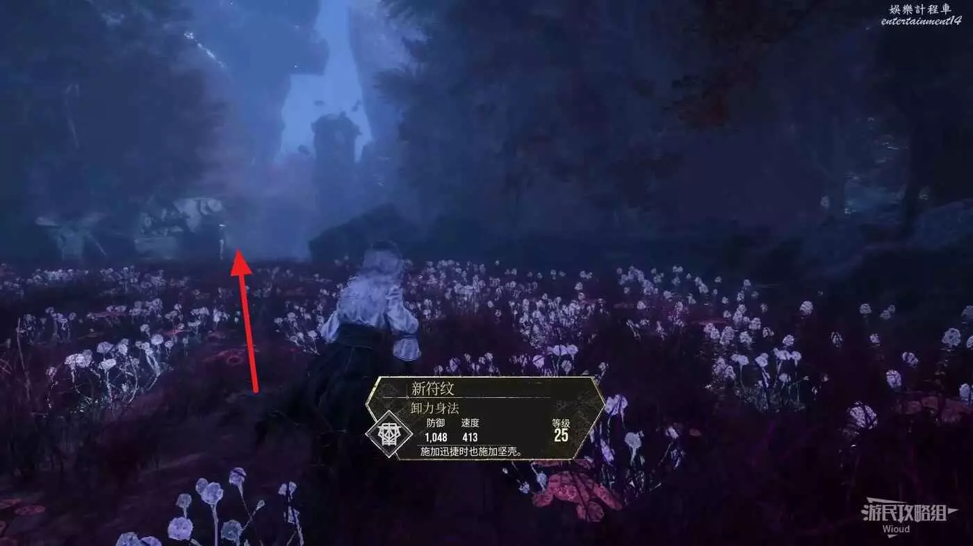 敵人面朝方向有個帳篷,此處可撿到符紋【助力閃避】。
