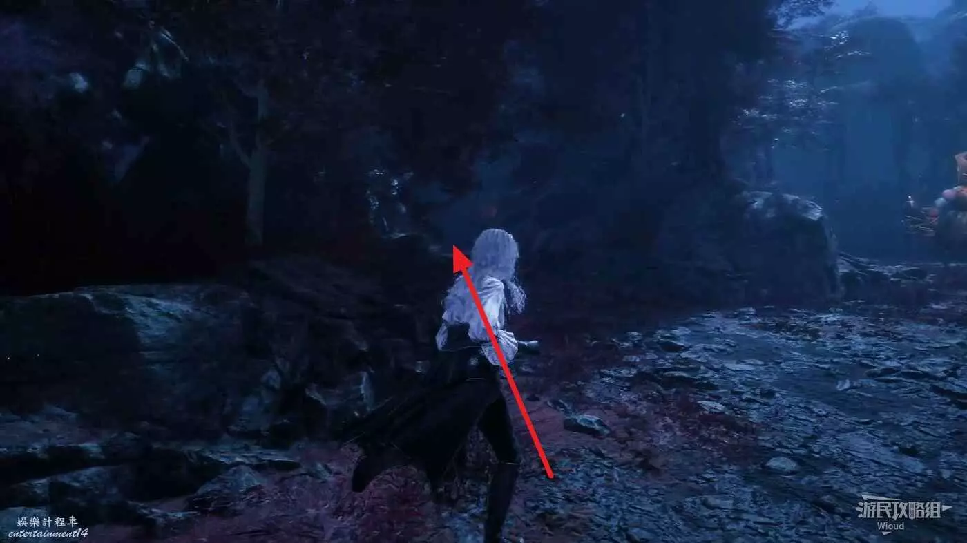 擊敗一個巨大敵人跟隨下圖箭頭所示位置走到頭,跳到底部有【靈光色】可拿。