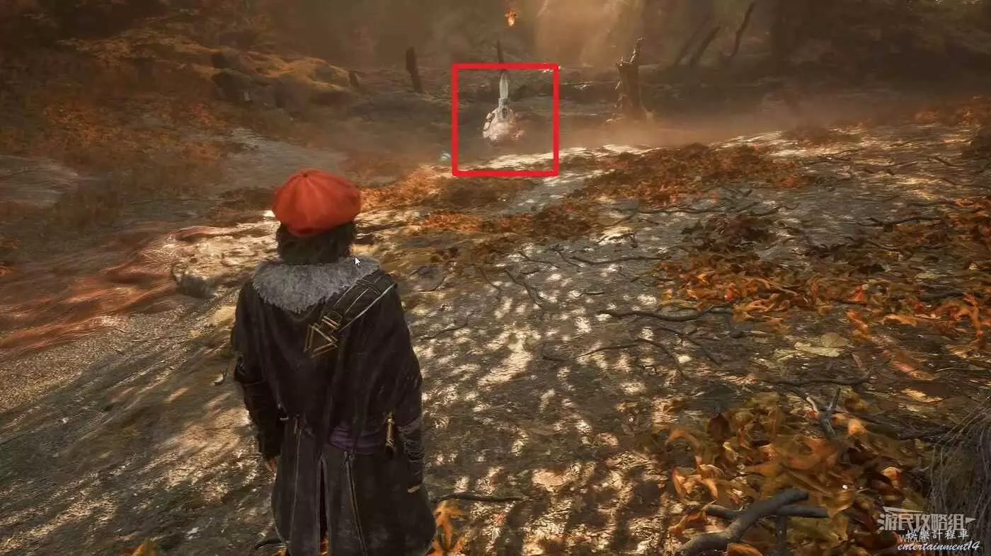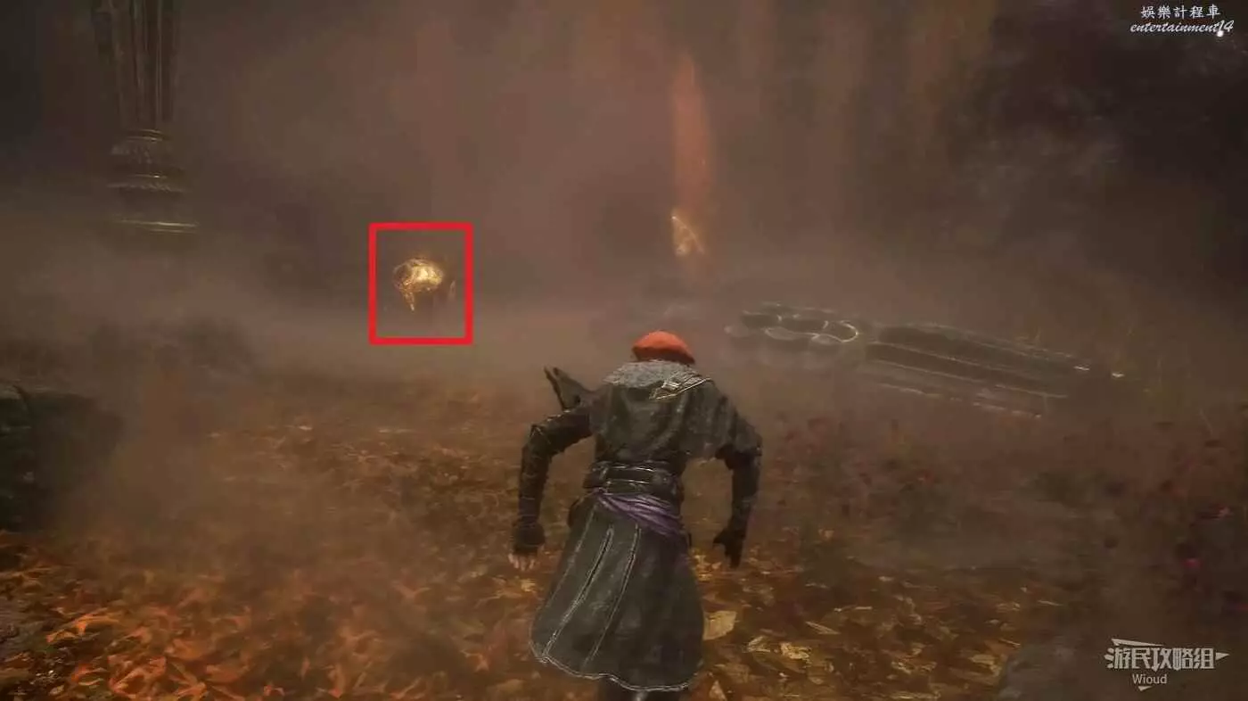 繼續沿路走到第一個旗幟的位置,然後與下圖紅框所示位置的暗影男孩對話觸發個劇情,這段劇情有判定,必須觸發!