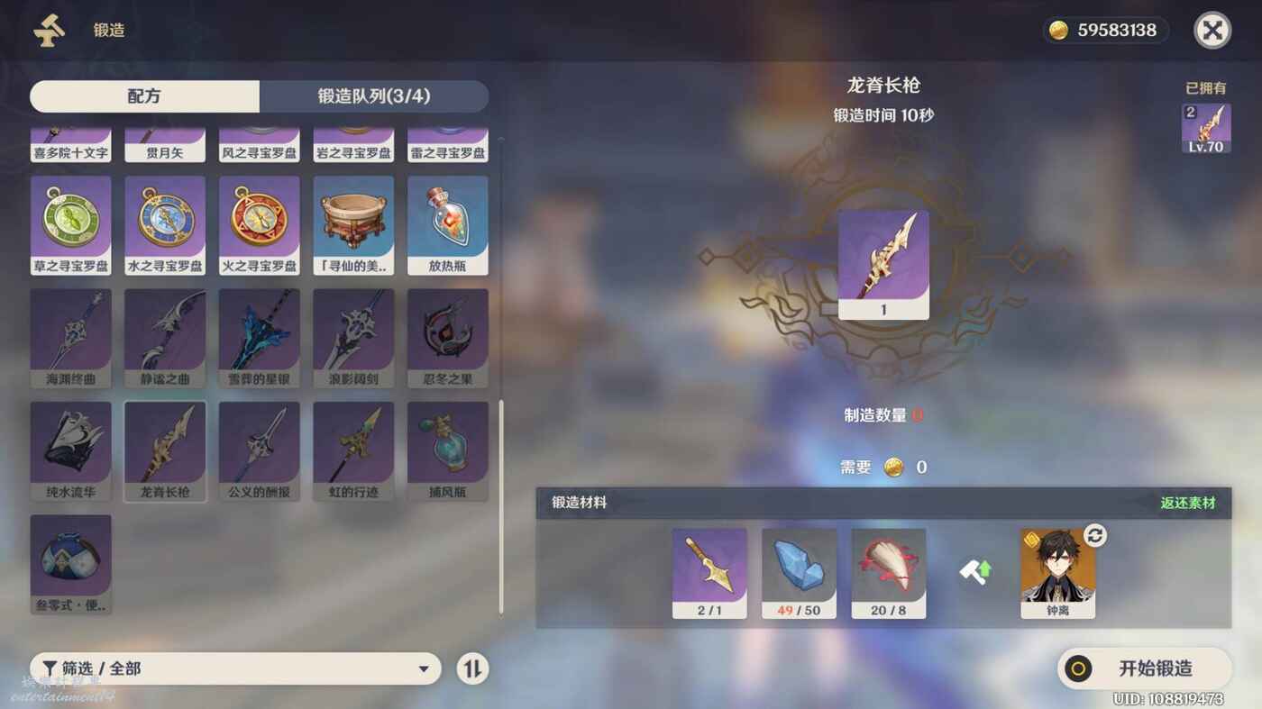汲取了力量的龍牙是4星武器龍脊長槍的製造材料