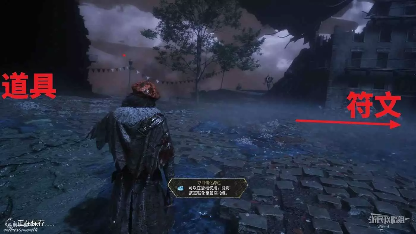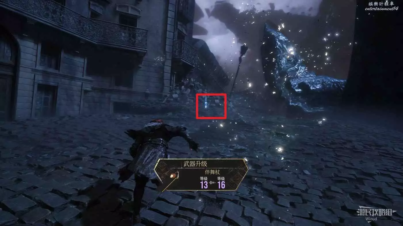 從精英怪後面的鉤爪跳到高處,上樓梯前左側可撿到一個【靈光色】。