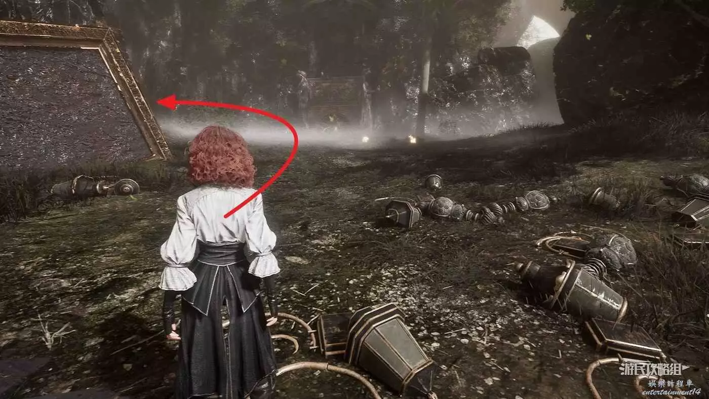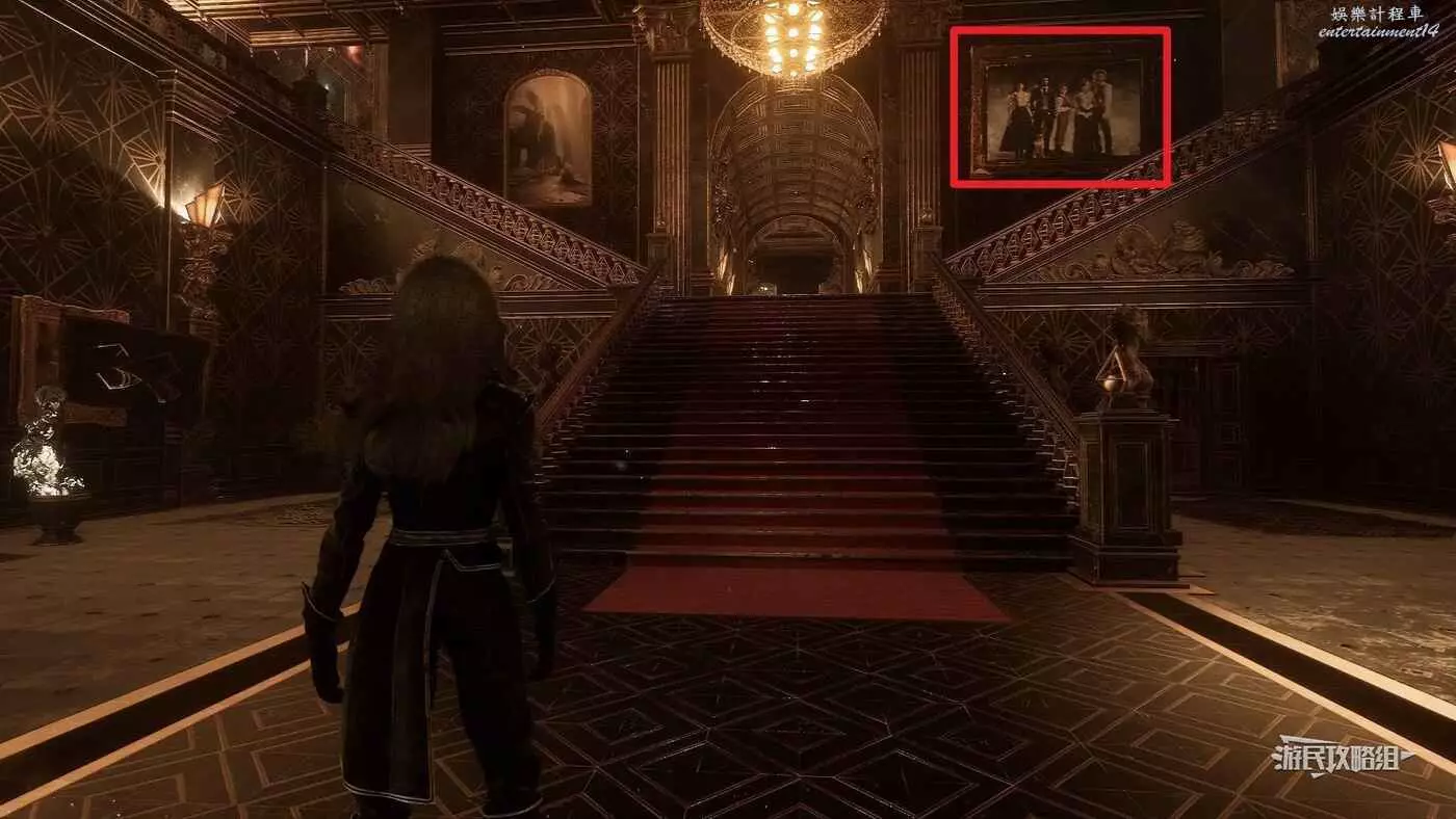 然後進入【宅邸】(有許多入口,例如刷頭村的入口可以進廚房)後,將肖像放在【玄關】遠征旗旁邊主樓梯右側的空畫框上,開啟走廊盡頭的餐廳。