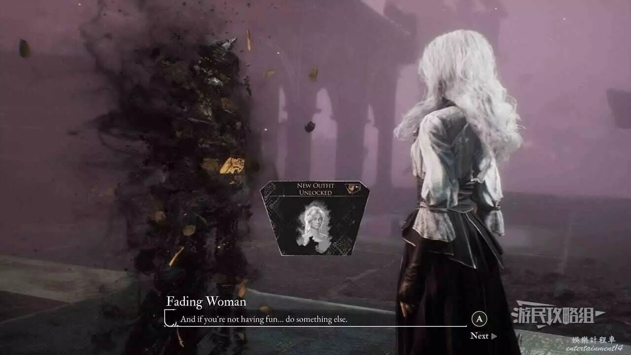 完成【無盡樓】的所有試煉(共11層,33個試煉)後,與【灰飛煙滅的女人】交談即可獲得。
