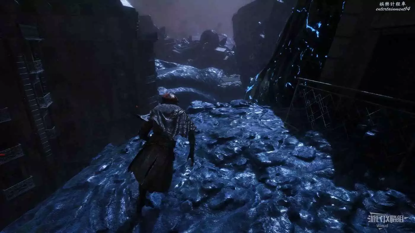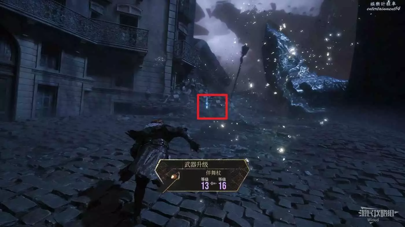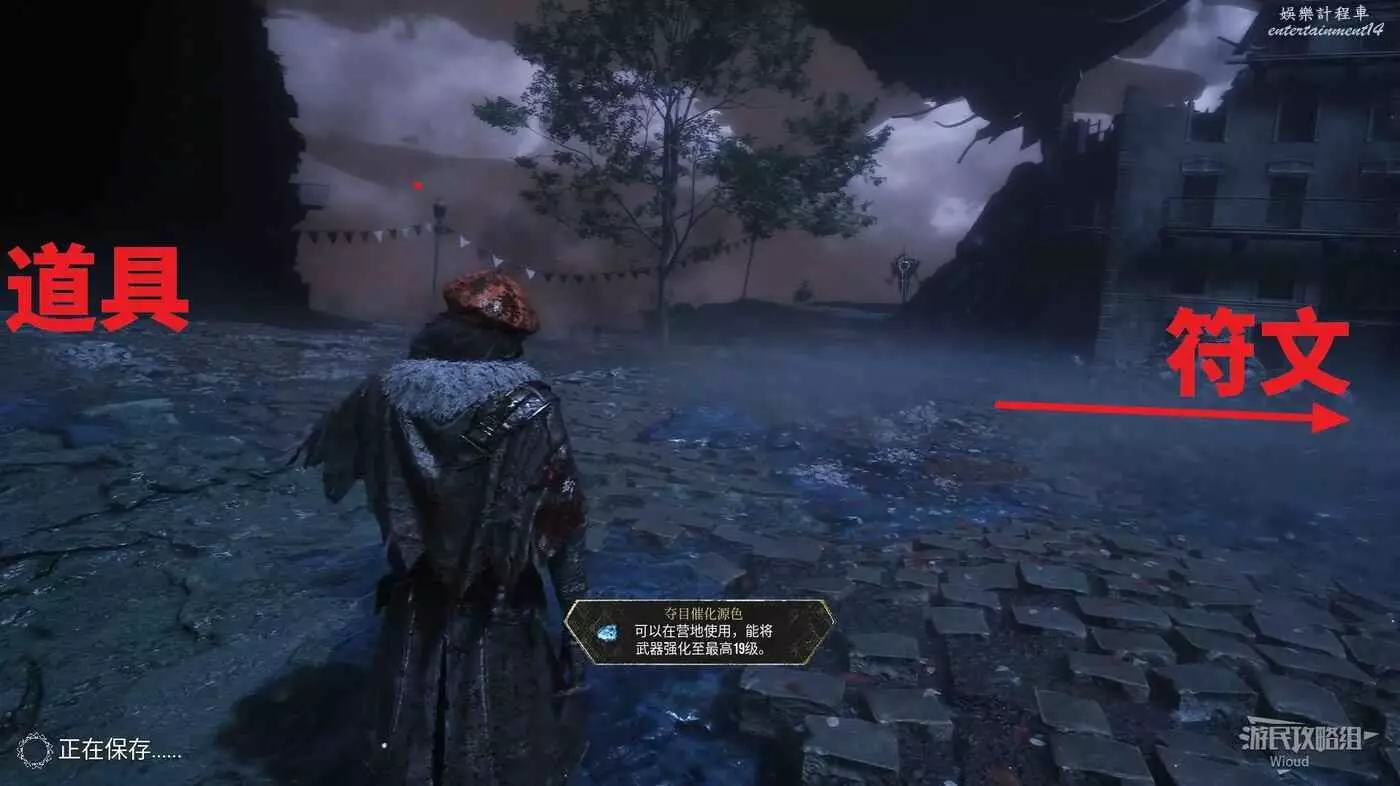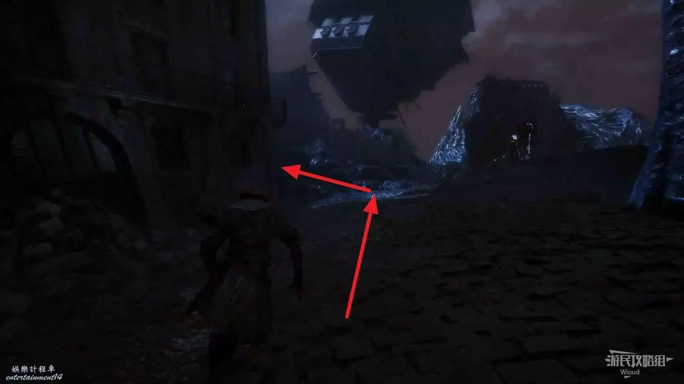 從精英怪後面的鉤爪跳到高處,上樓梯前左側可撿到一個【靈光色】。