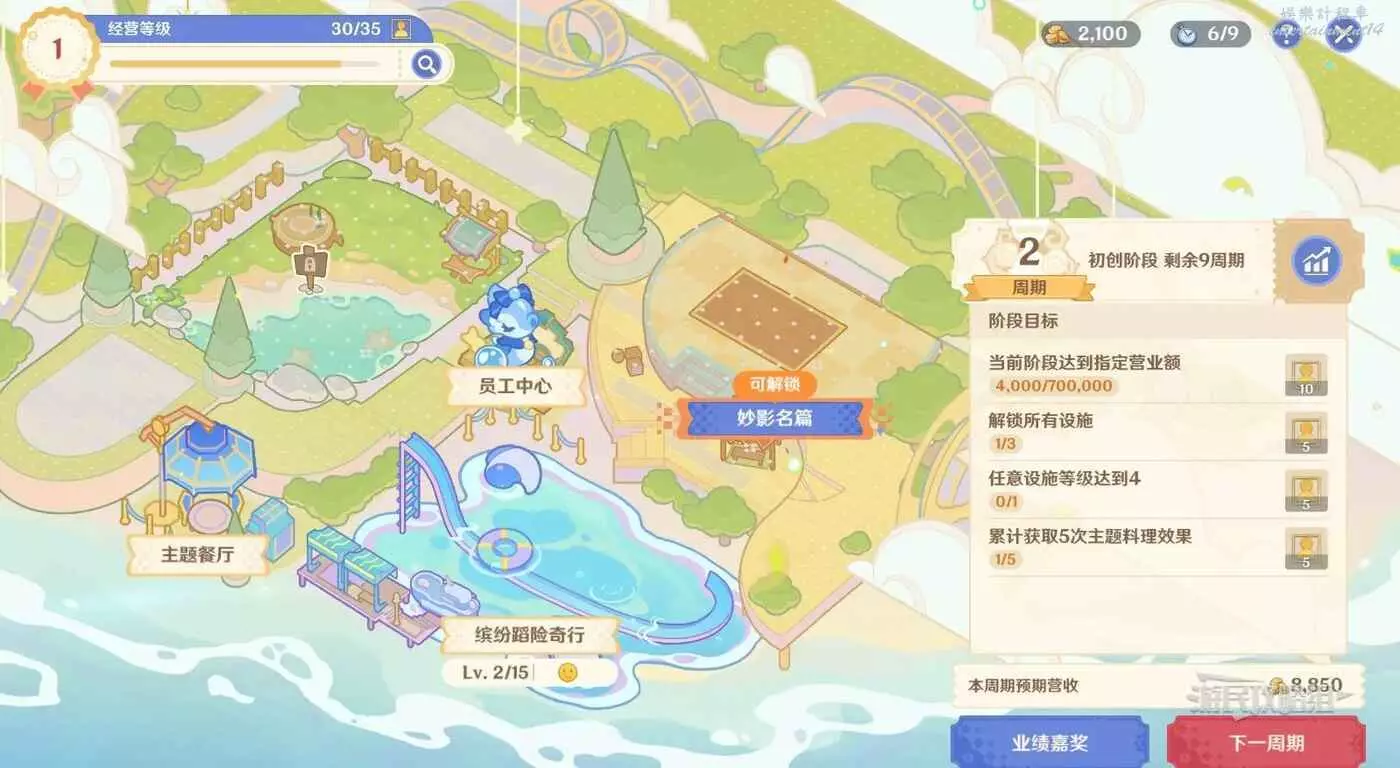 升級【悠悠慢莊園】並調整最優排版,根據自身情況也可以只升級不調整。此時我們的經營等級已經到達上限,之後不會再提升經營等級了,後續大家可以按照自身情況進行後續週期的經營,資金充裕後可以優先為【繽紛蹈險奇行】和【妙影名篇】升級以解鎖小遊戲第二關。等待一天后解鎖下一階段。
