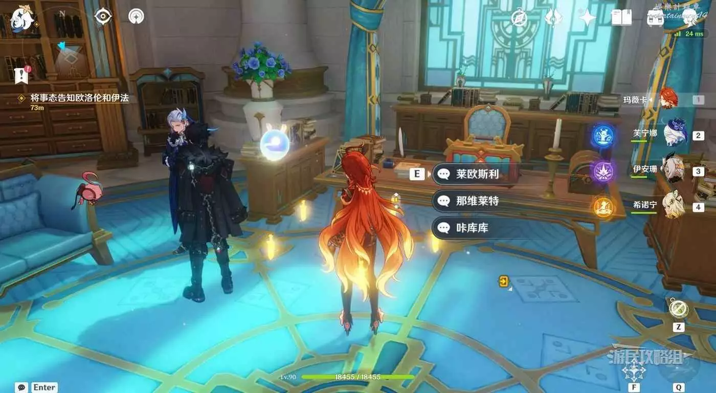 對話結束後進入沫芒宮那維萊特的辦公室觸發劇情。劇情結束後可以分別與萊歐斯利和那維萊特以及哢庫庫交談。