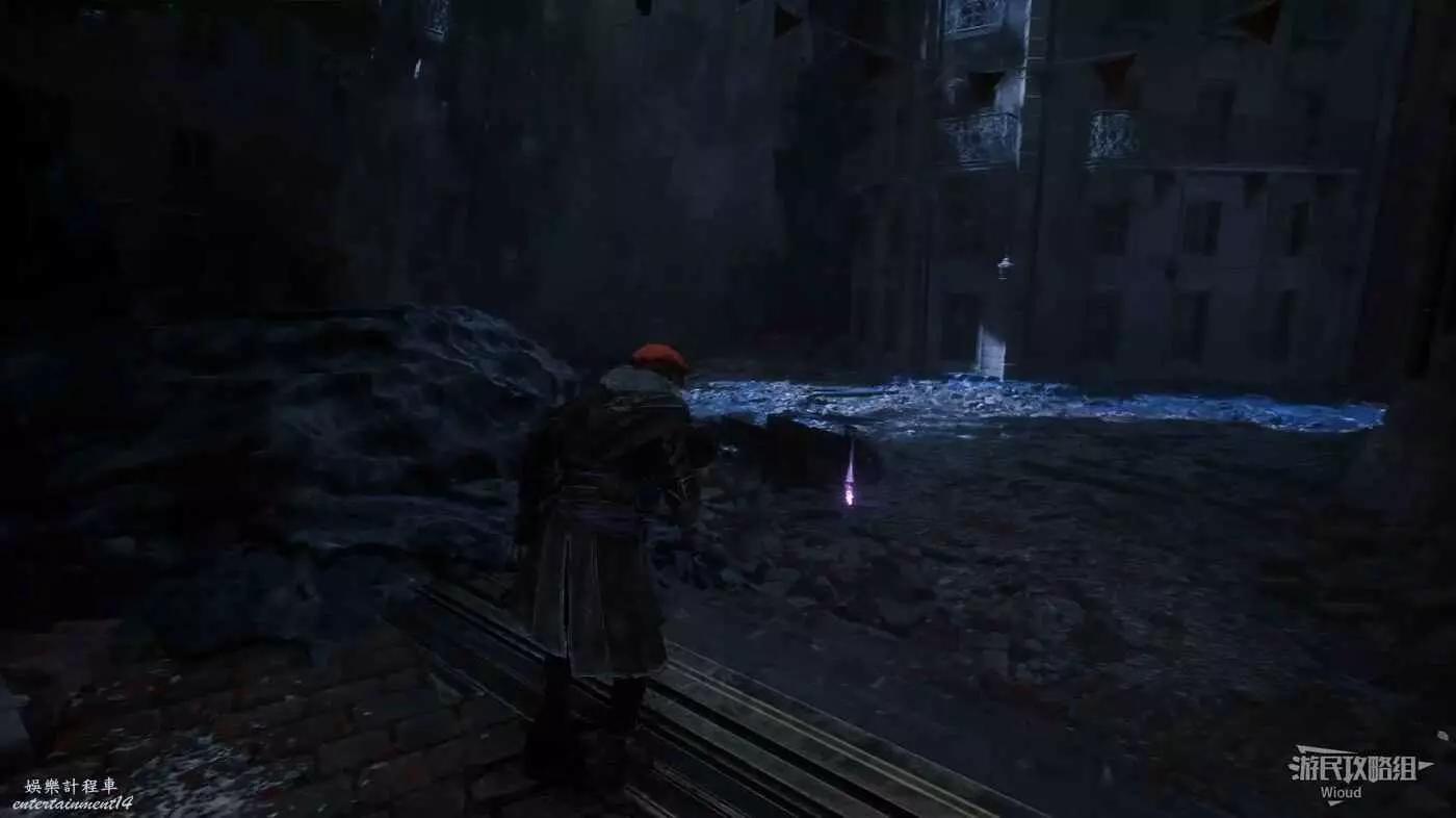 走不遠會看到一個帶著燈籠的敵人,拱門左側與怪物旁的平台都可以撿到一個【靈光色】。