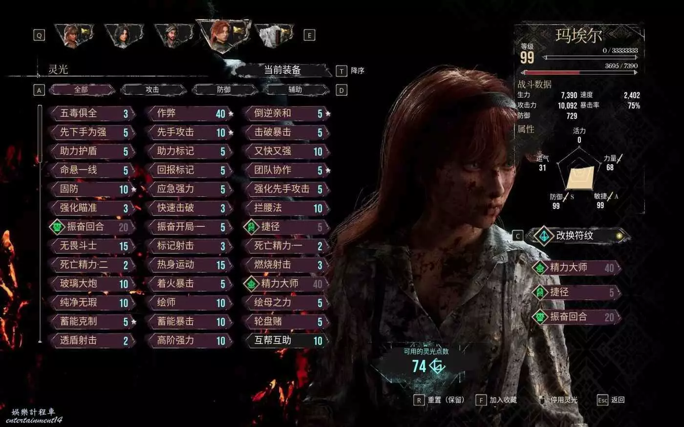 瑪埃爾妹妹:神!外掛!技能點出 大步流星、劍花怒放、中強音、孤注一擲。勢如破竹也可以點來破盾。沒拿告捷前就大步流星進高手,然後打劍花,沒行動點就中強音,保著高手打。告捷需要在“刷頭村”主線競技最後一場,由妹妹上場。