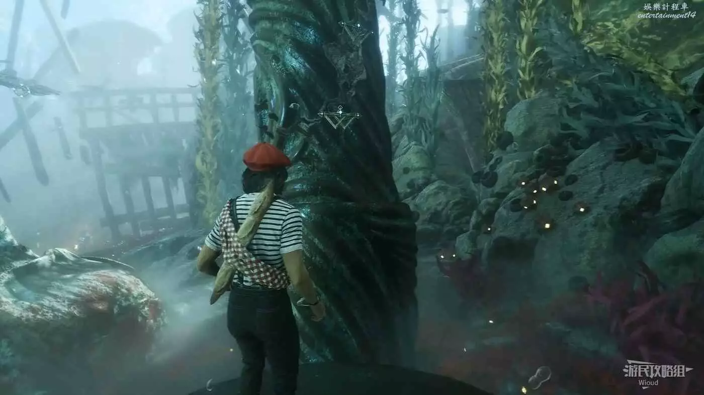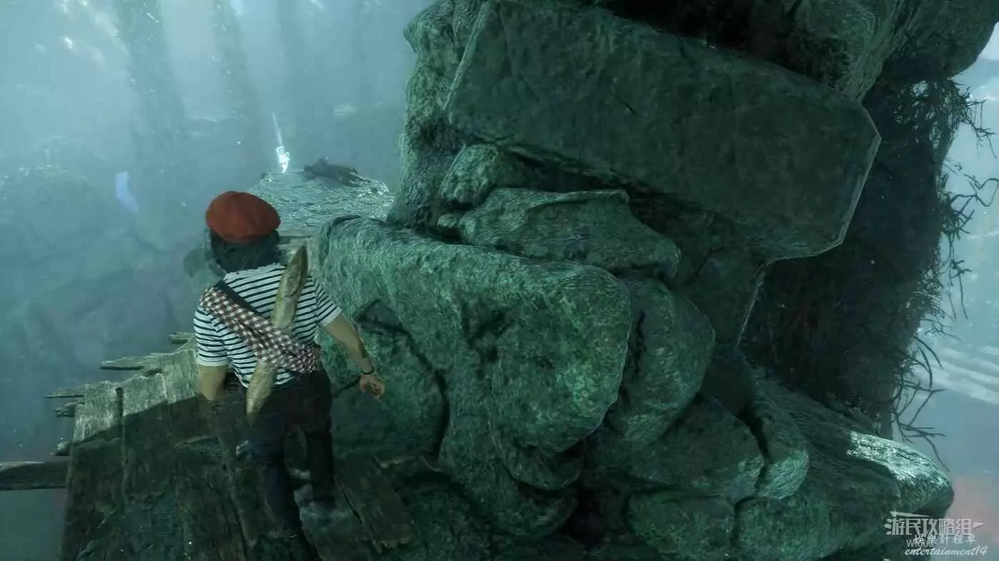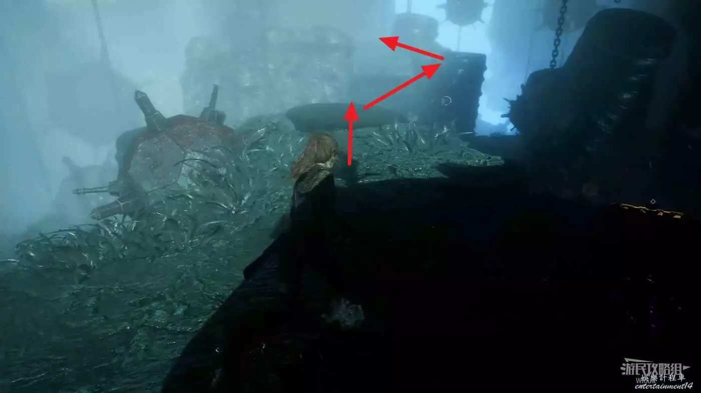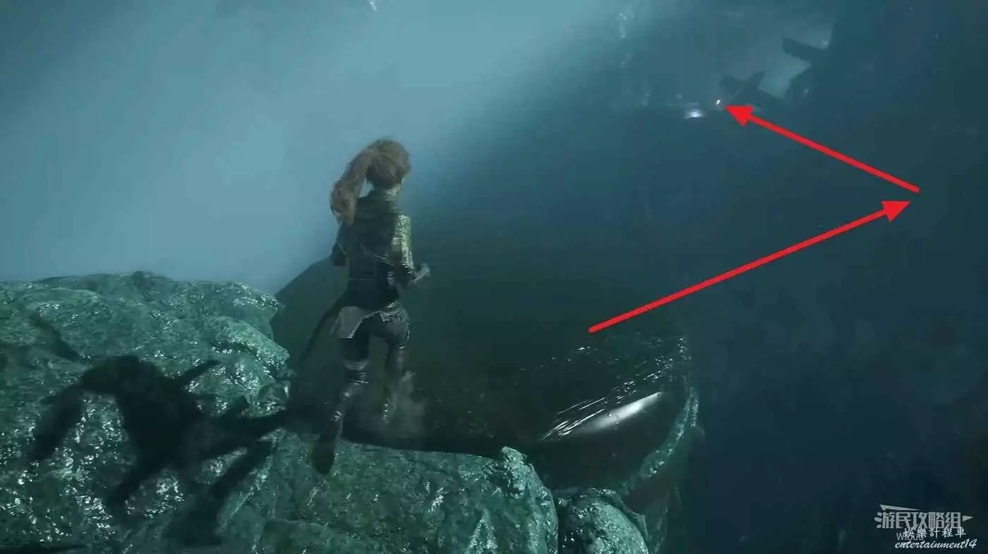 平台處可以看到右前方有個發光的道具點,繼續沿著途中的路徑跳到對面,拾取道具【完好的水雷】。