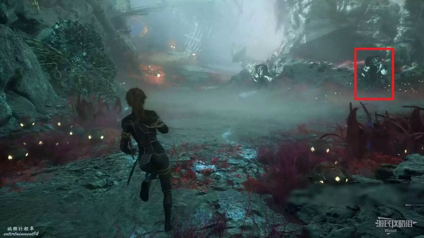 走到開闊區域,擊敗前方右側的經怪可獲得武器【鰭刺】。