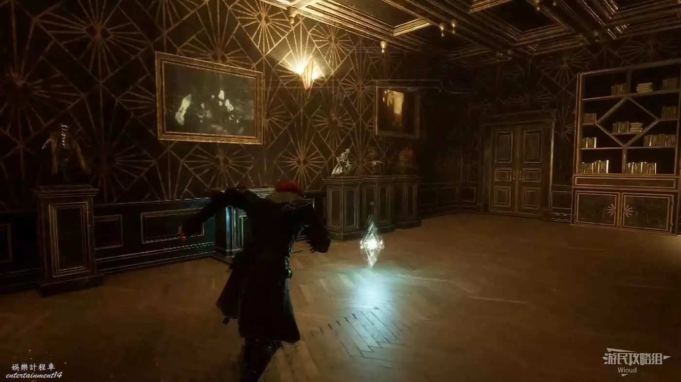 先拾取一些源色,使用鉤爪跳到第三個平台上通過繩索往下走,底部光點可拾取符紋【恩惠療愈】。