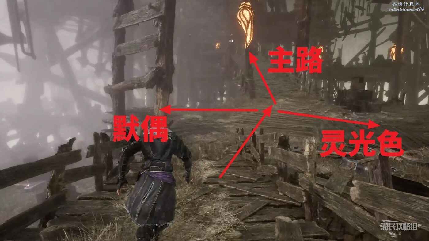 轉頭走到前方開闊區域,左側有個拿燈籠的怪物,將其擊敗往左走到一個岔路。