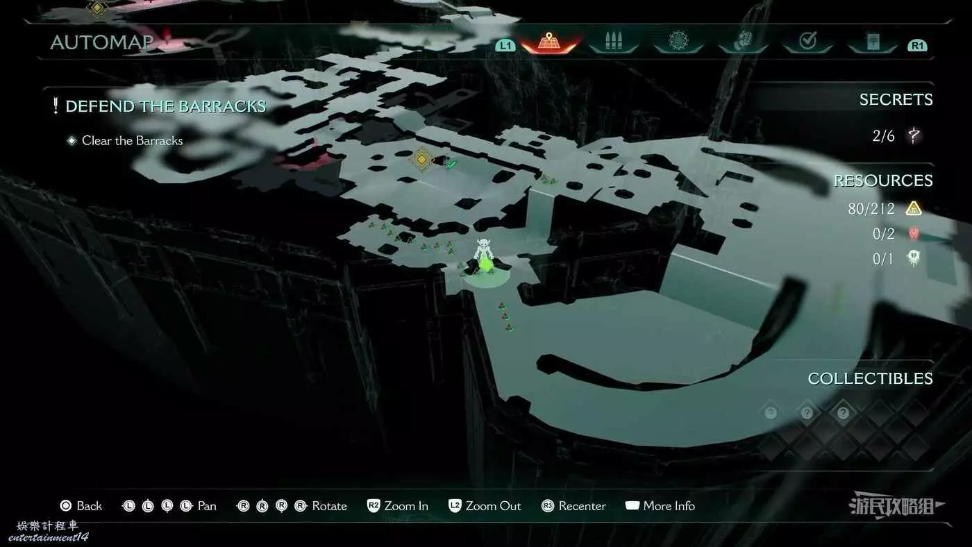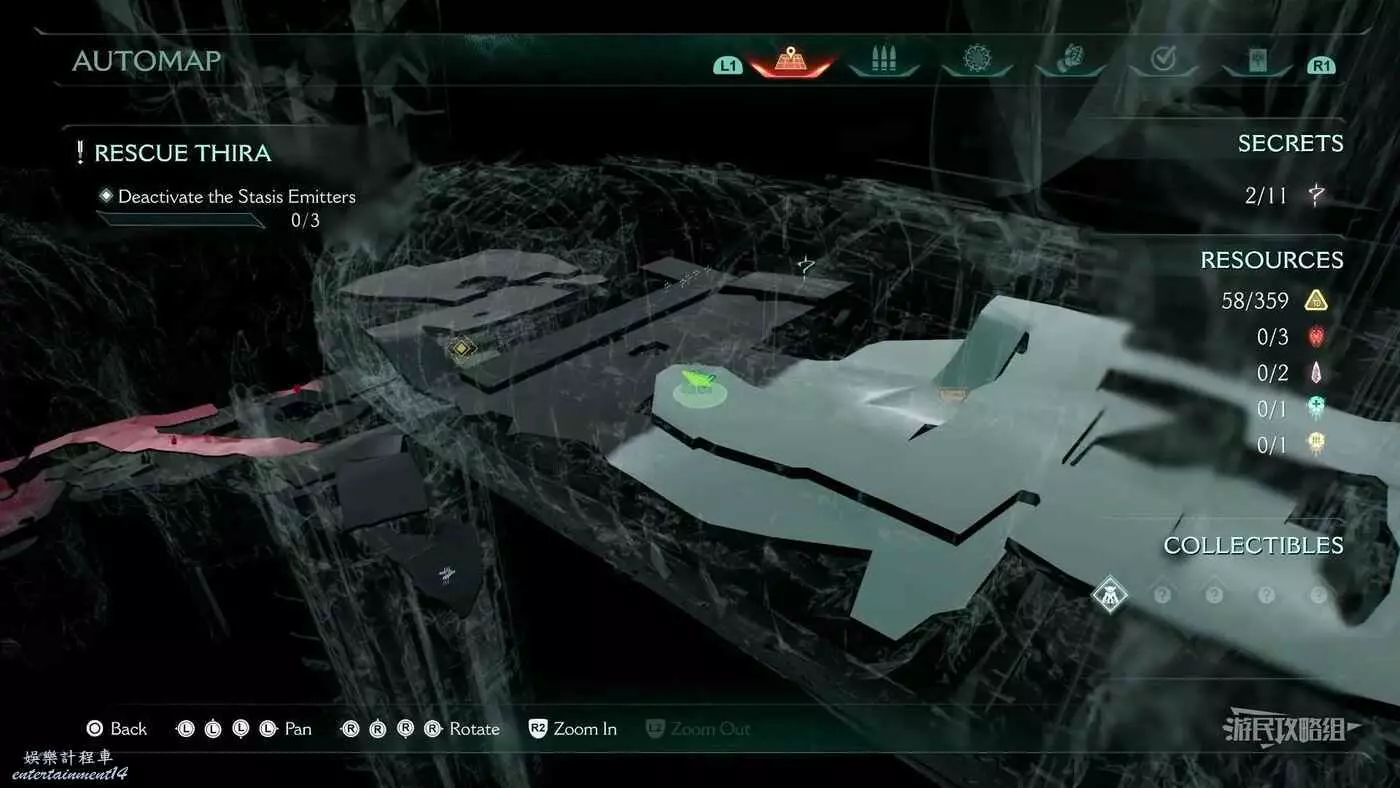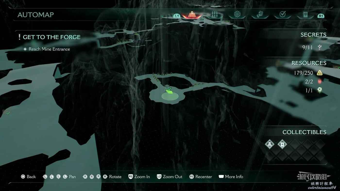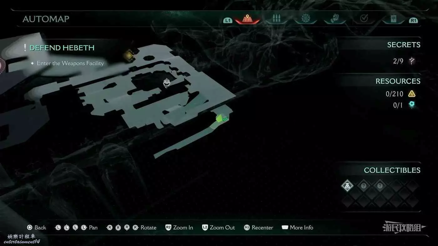 拿到第九章秘密鑰匙後,開啟平台上方的木制平台通道,跳過一系列平台後,可以看到玩具和一個帶有紅寶石的雕像,參考下方地圖位置。