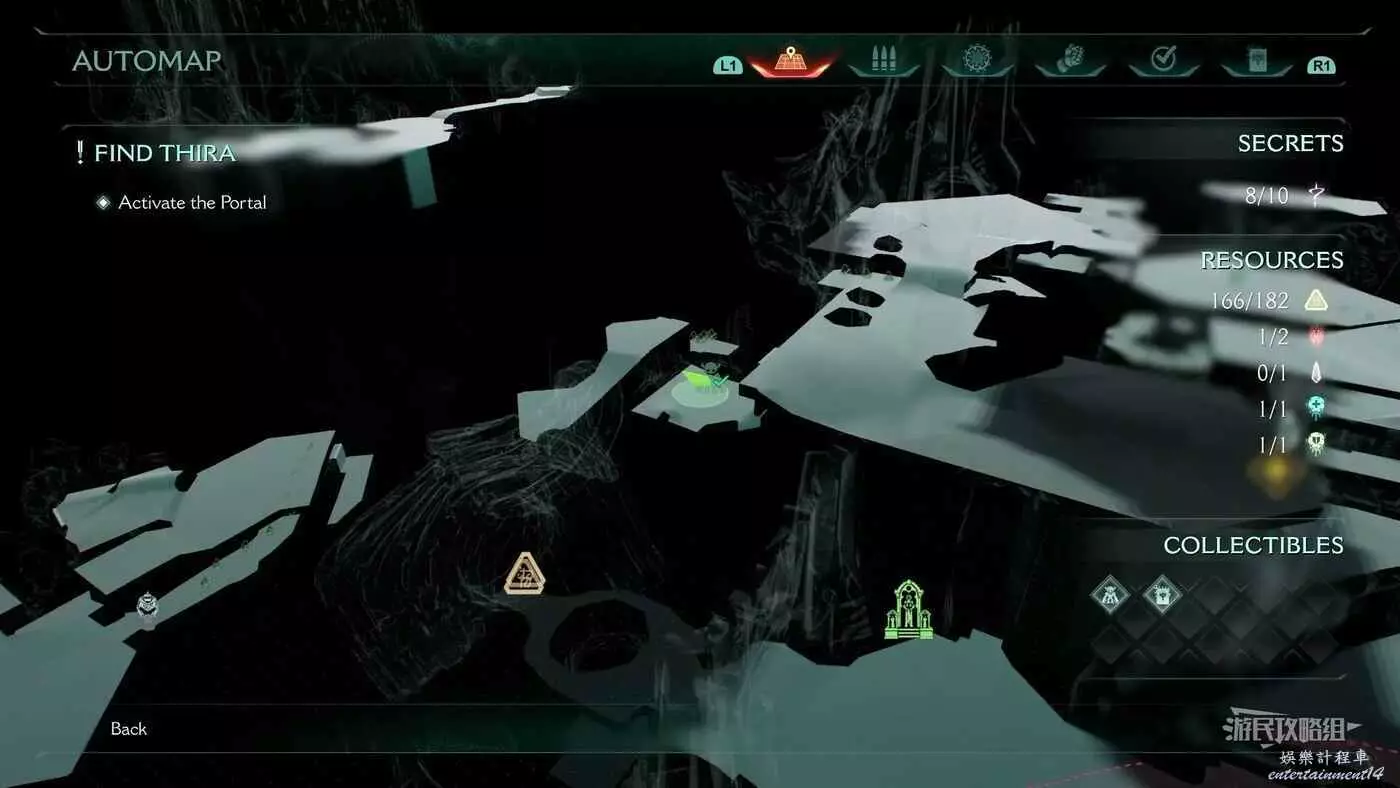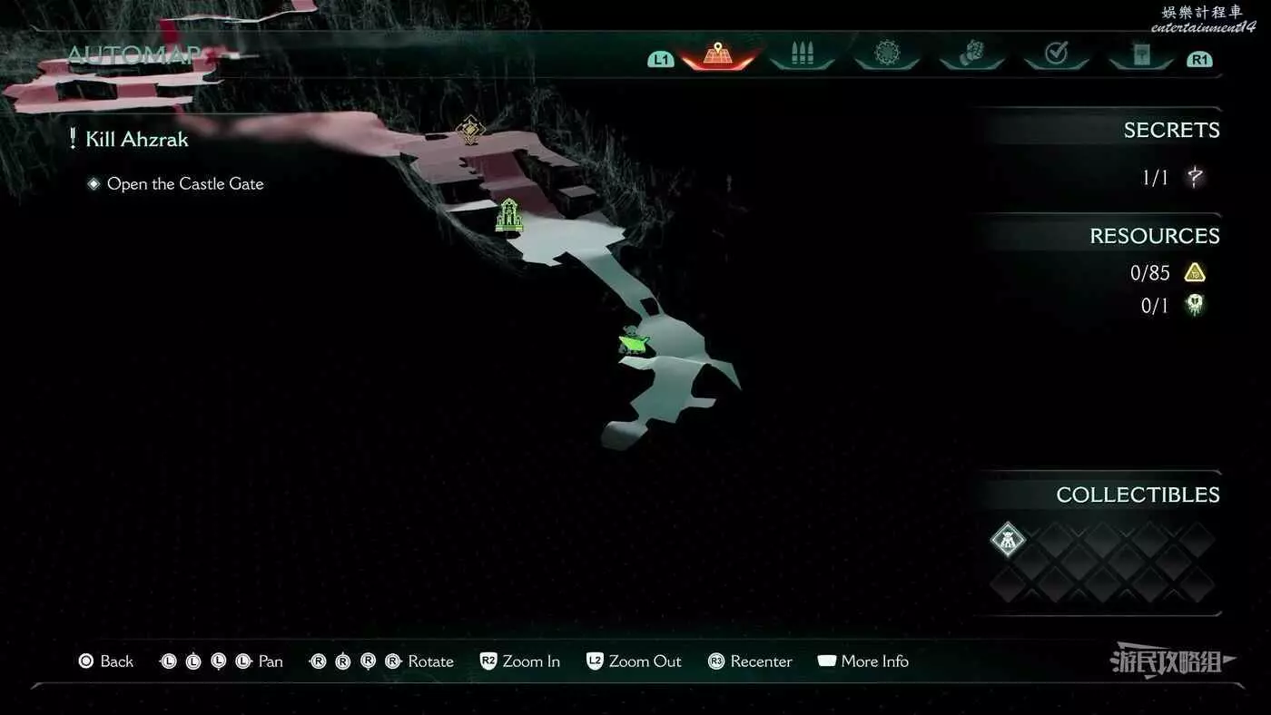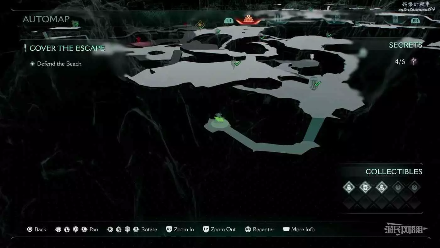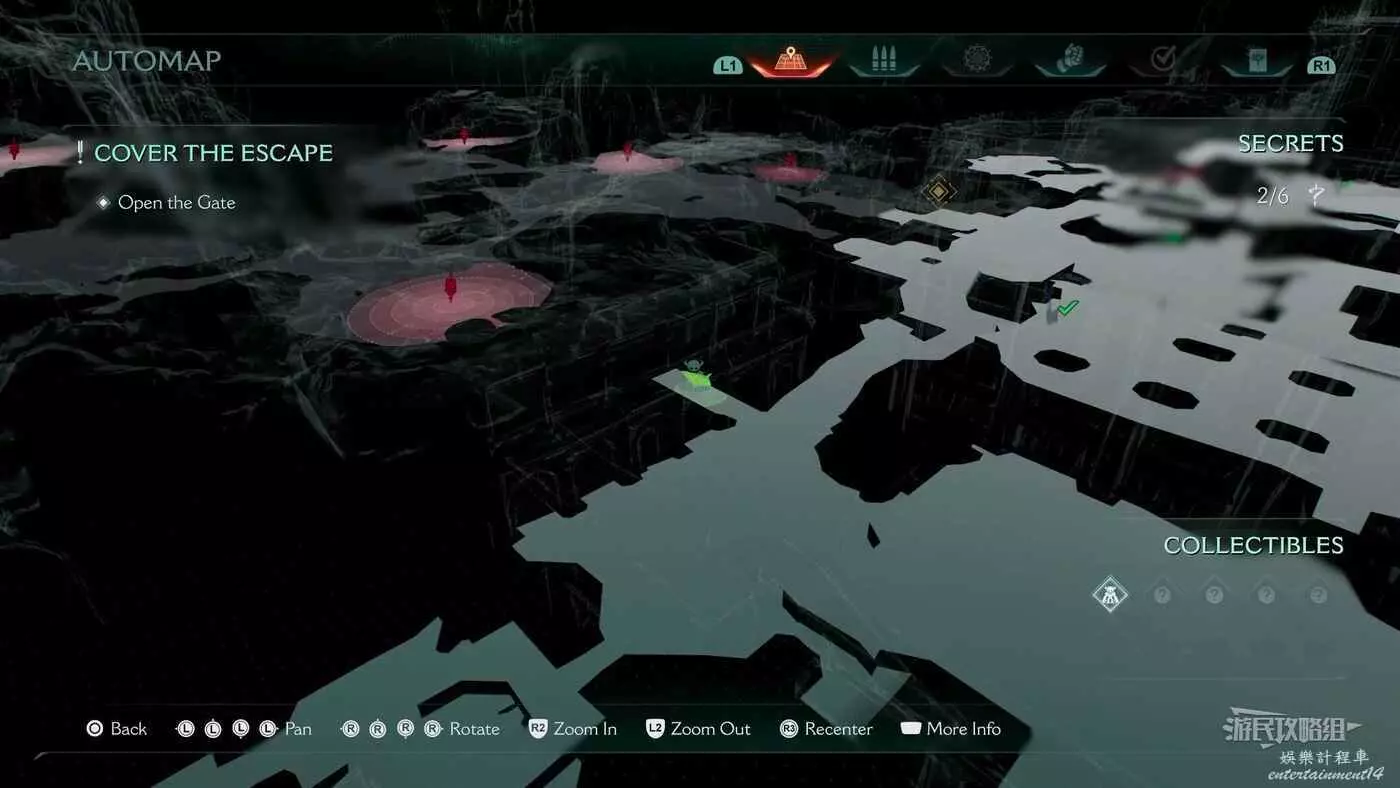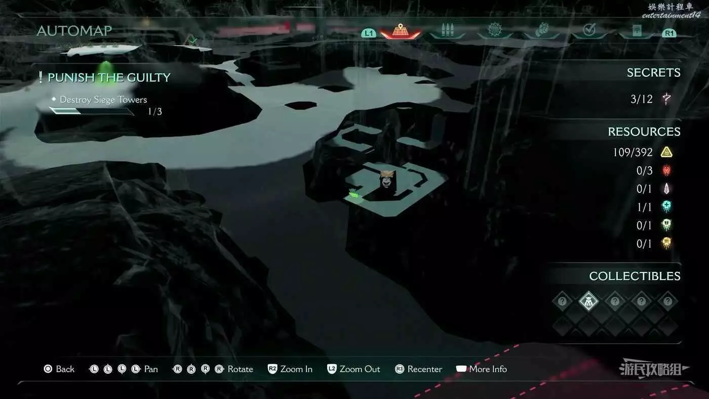 拿到第九章秘密鑰匙後,開啟平台上方的木制平台通道,跳過一系列平台後,可以看到玩具和一個帶有紅寶石的雕像,參考下方地圖位置。