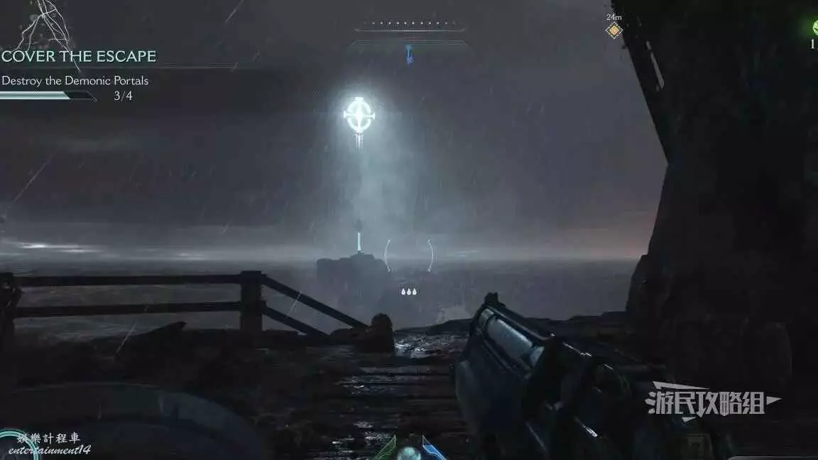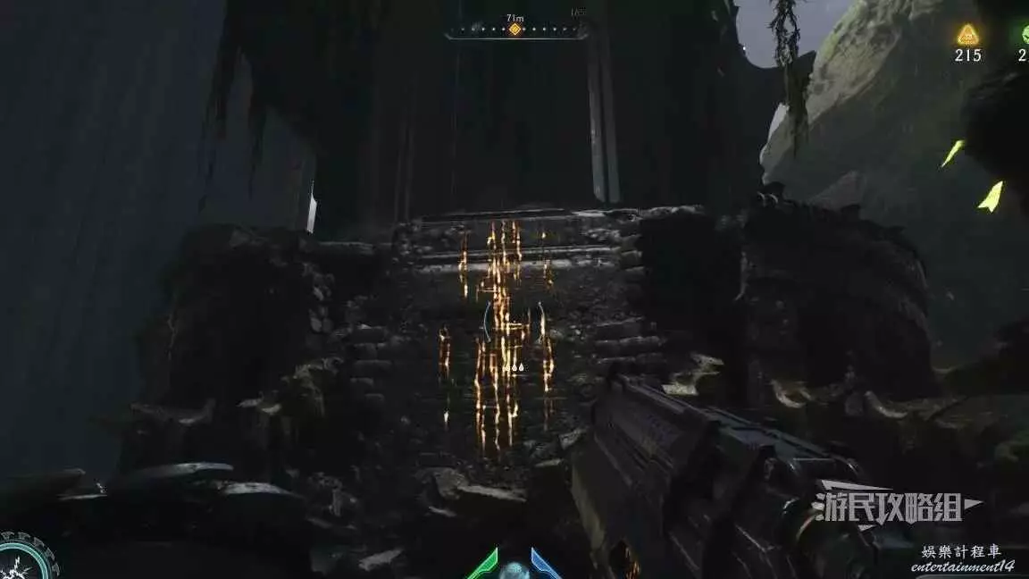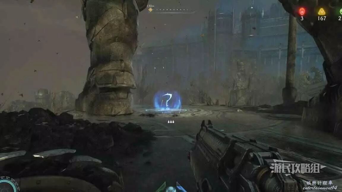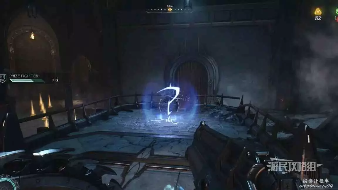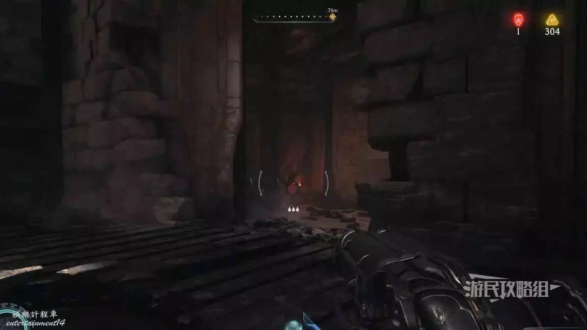 拿到超級霰彈槍後穿過後方建築,從前方縫隙跳下平台,清完小怪後找到可以攀爬的牆體,往上爬到台階頂端即可看到玩具。