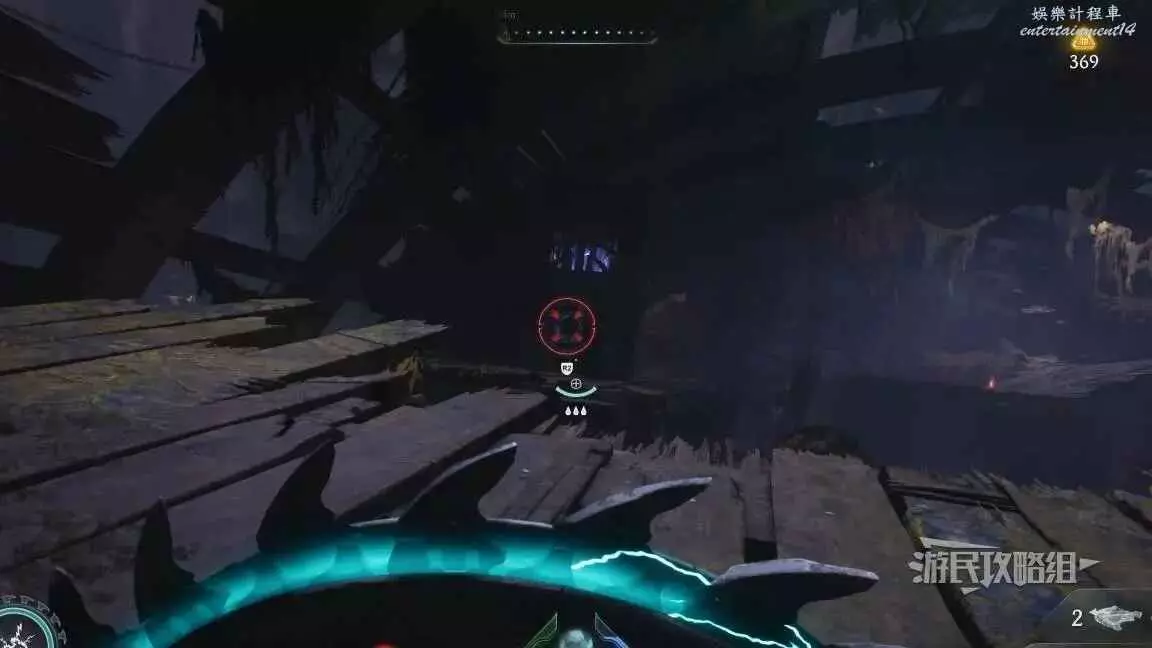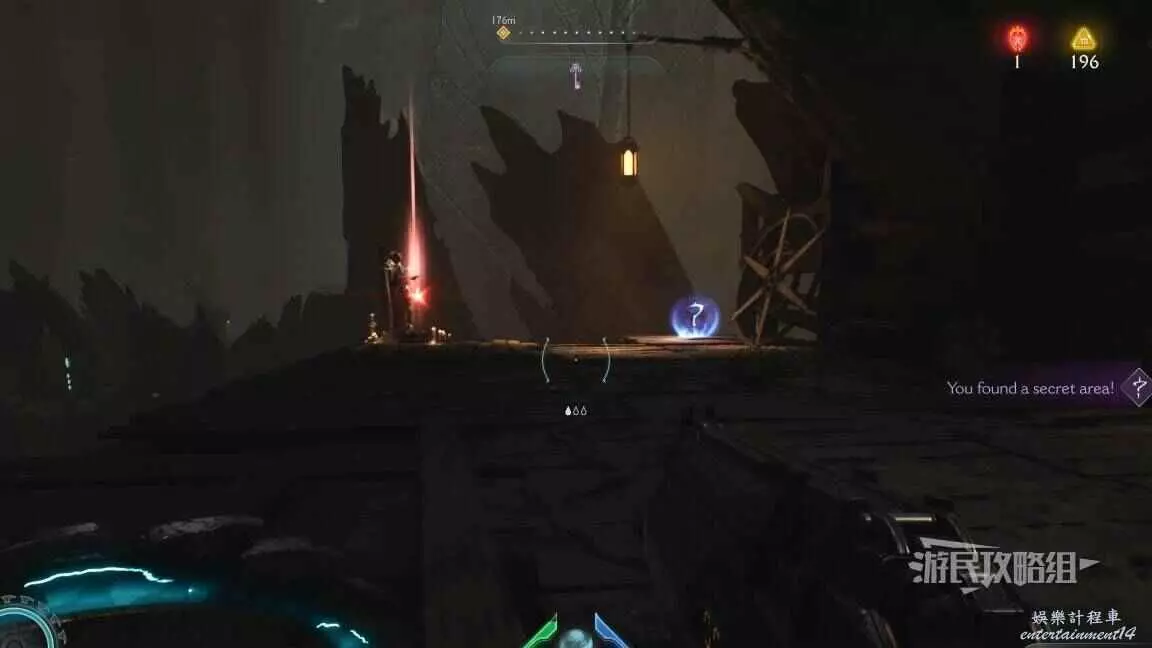 在第二章初始區域獲得鋸盾後,繼續前進到需要拉動拉杆開啟閘門的位置,先不要操作拉杆,返回到左側堆疊的木箱處爬到上層,跳下旁邊的豎井到達底部即可看到。