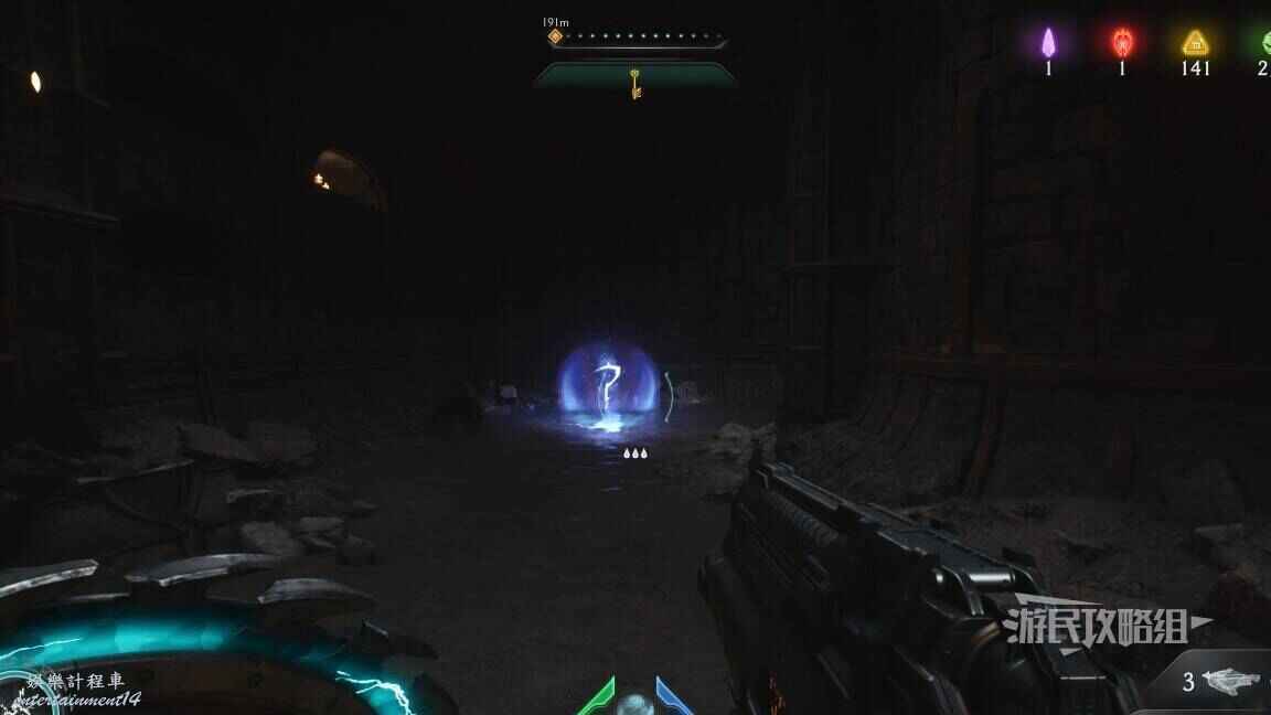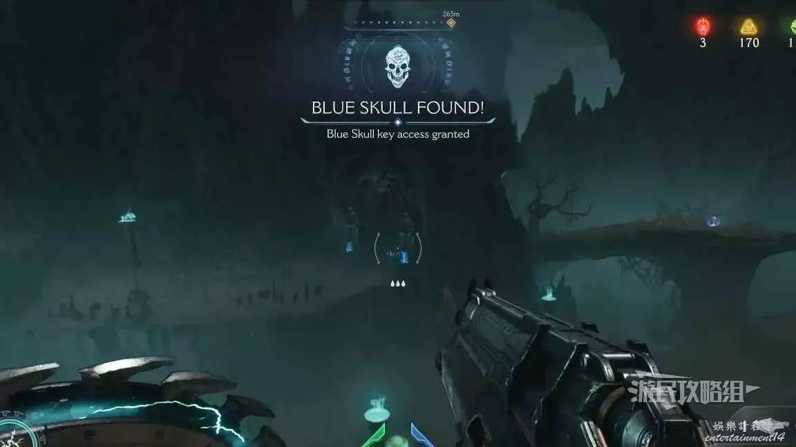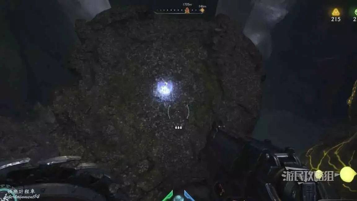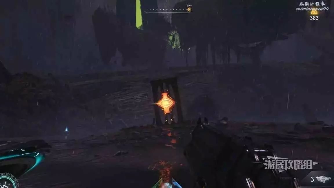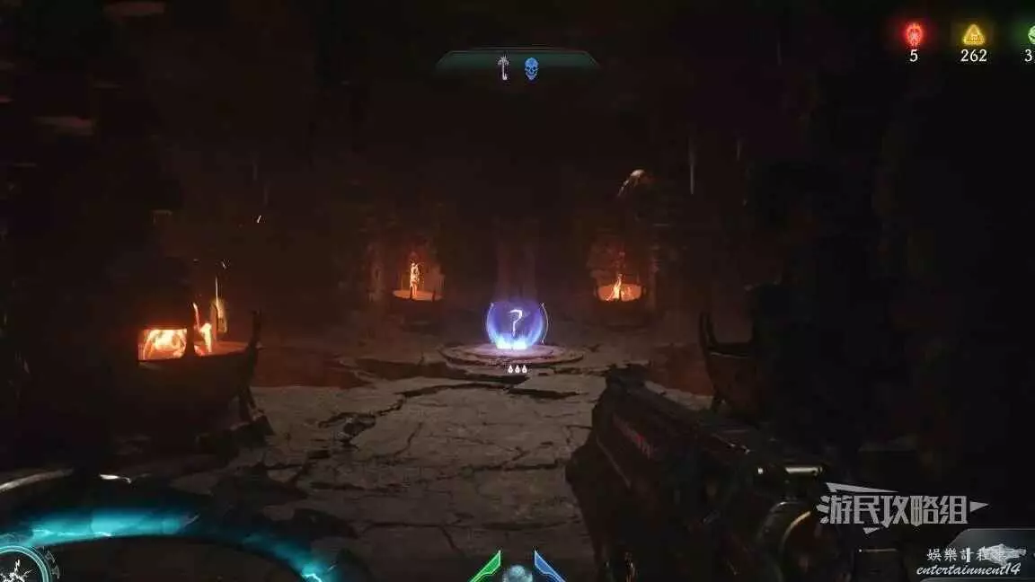在巨獸腹部外壁上找到一個藍色齒輪,扔盾鋸使牆壁向後移動,進入後方的隱藏區域,沿著黃金痕跡走會進入一個新的區域,擊敗這裡的怪物後會出現紅色傳送門,先不要進入傳送門,玩具就在傳送門左側。