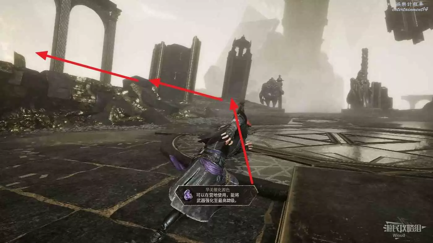 返回最開始的位置沿主路穿過一個鉤爪點,此時往左走,可以撿一個【靈光色】。