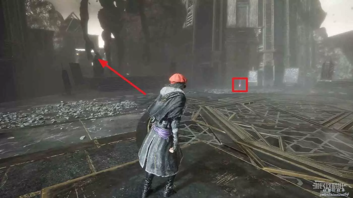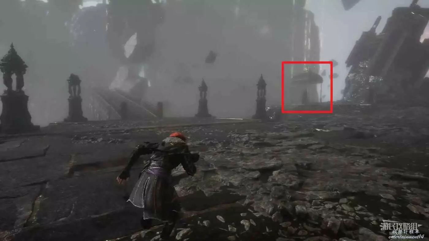 沿路走,穿過一個方形拱門後左拐,可以撿到一個【靈光色】。