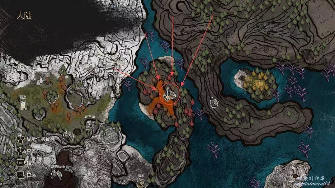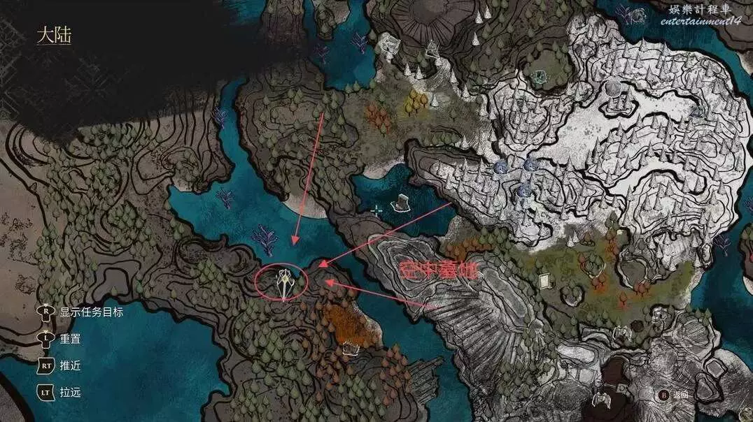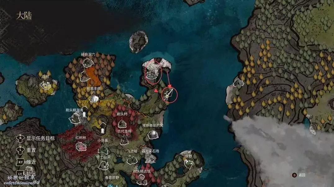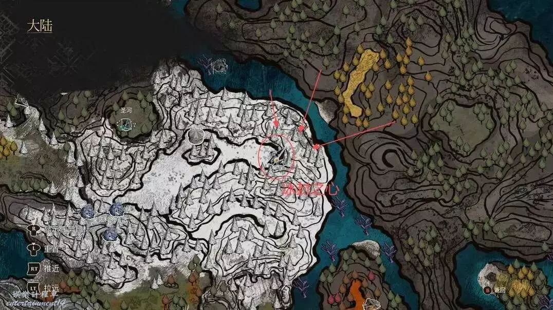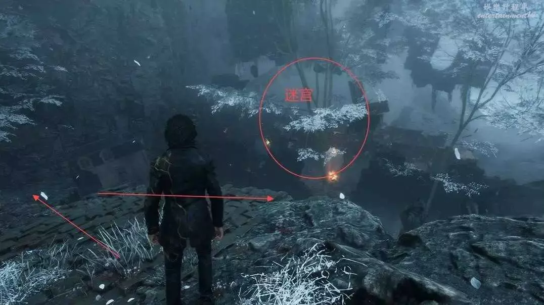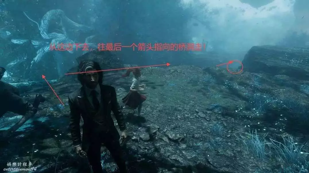 這個需要我們到達諾柯的小屋以後,從洞口進去,沿著如下圖的路線找到雷靈!