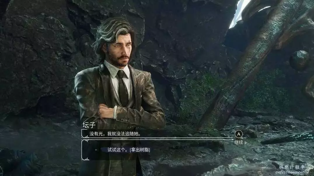 我們需要去下面的荒廢的營地尋找一個樹脂交給他,然後幫他把燈用自由射擊打亮一下,接著對話就可以!