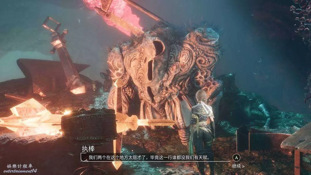 直接就在傳送點後面,看到一個白色的罎子癱坐在那裡,口中說著要尋找光!