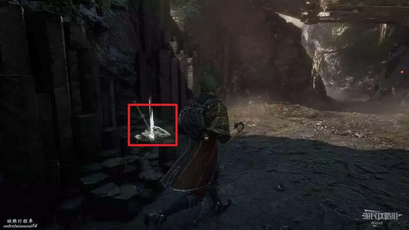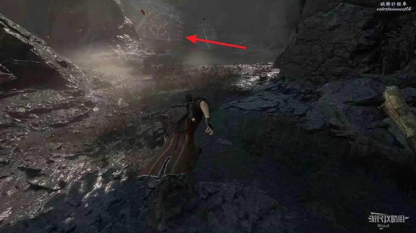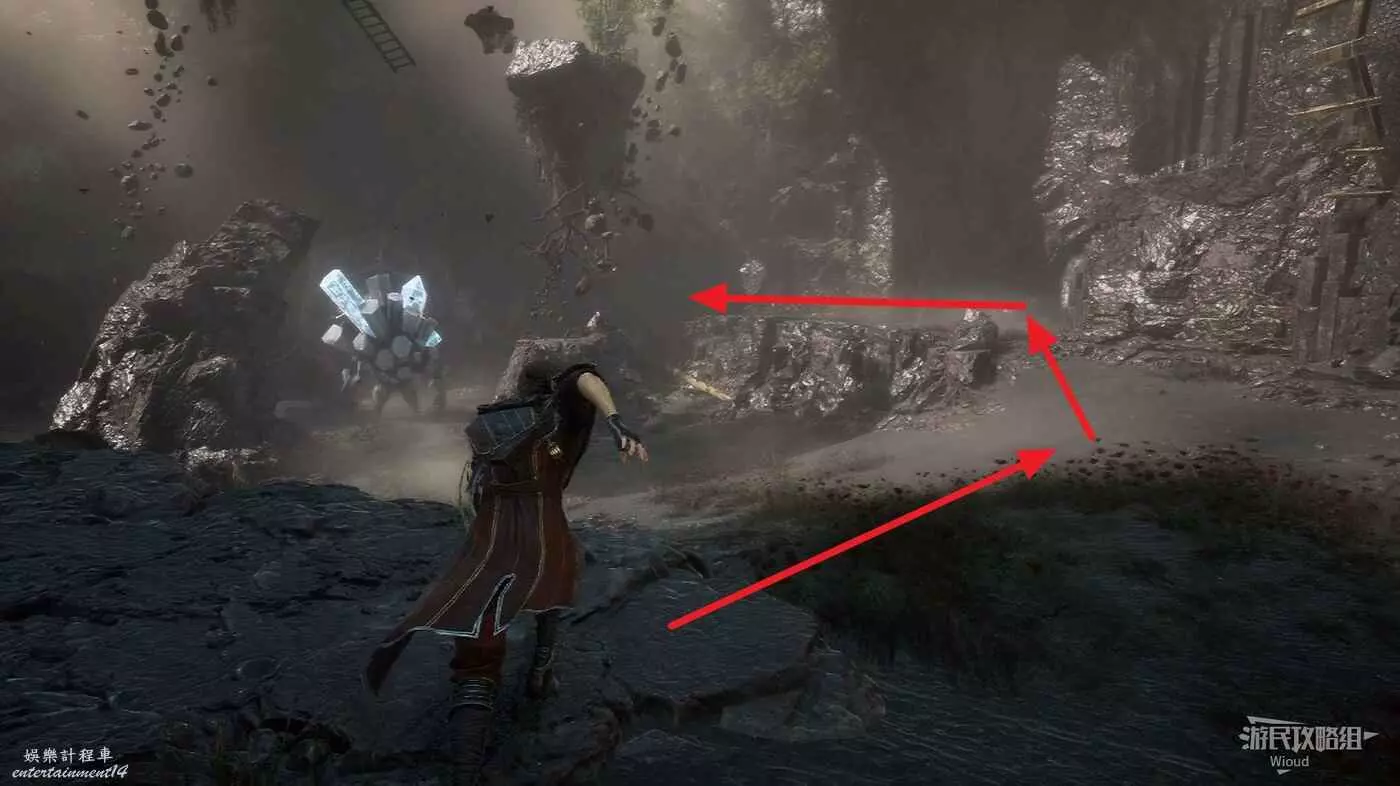 因為我們是從區域右側跳下來的,幹掉石頭人正前方有個可以進入的壺口,裡面可以拿到符紋【擊破反擊】。