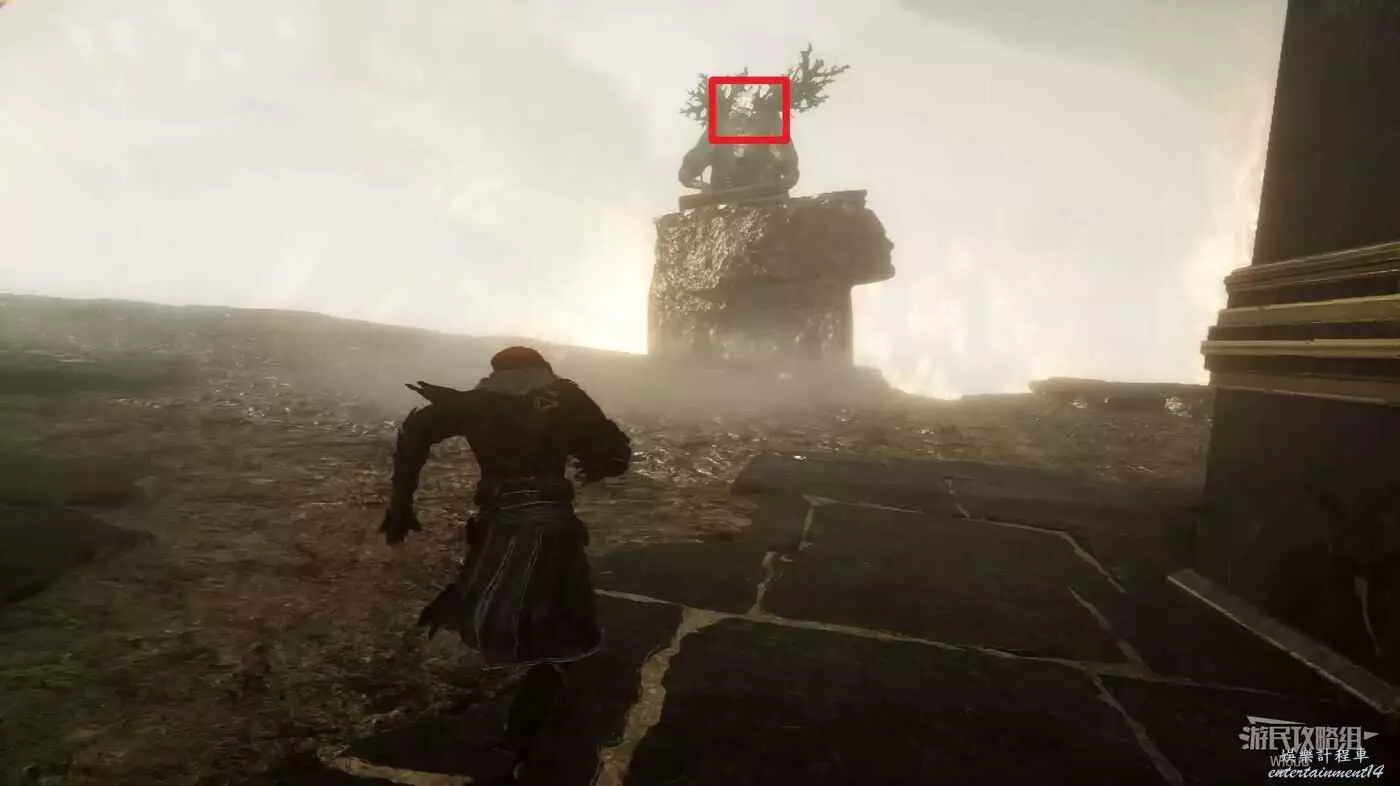 沿路走,穿過一個方形拱門後左拐,可以撿到一個【靈光色】。