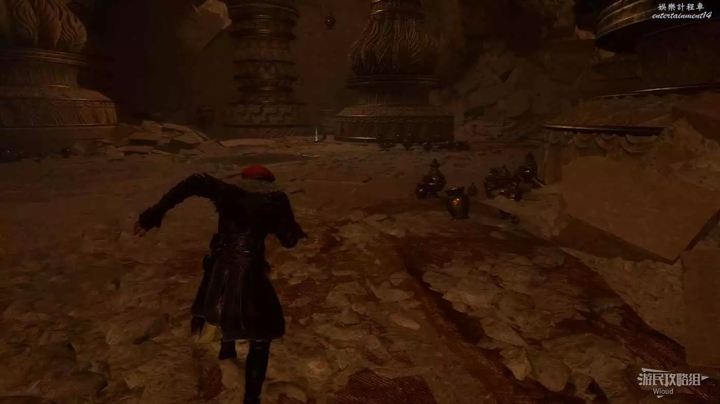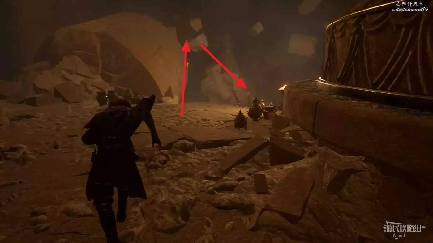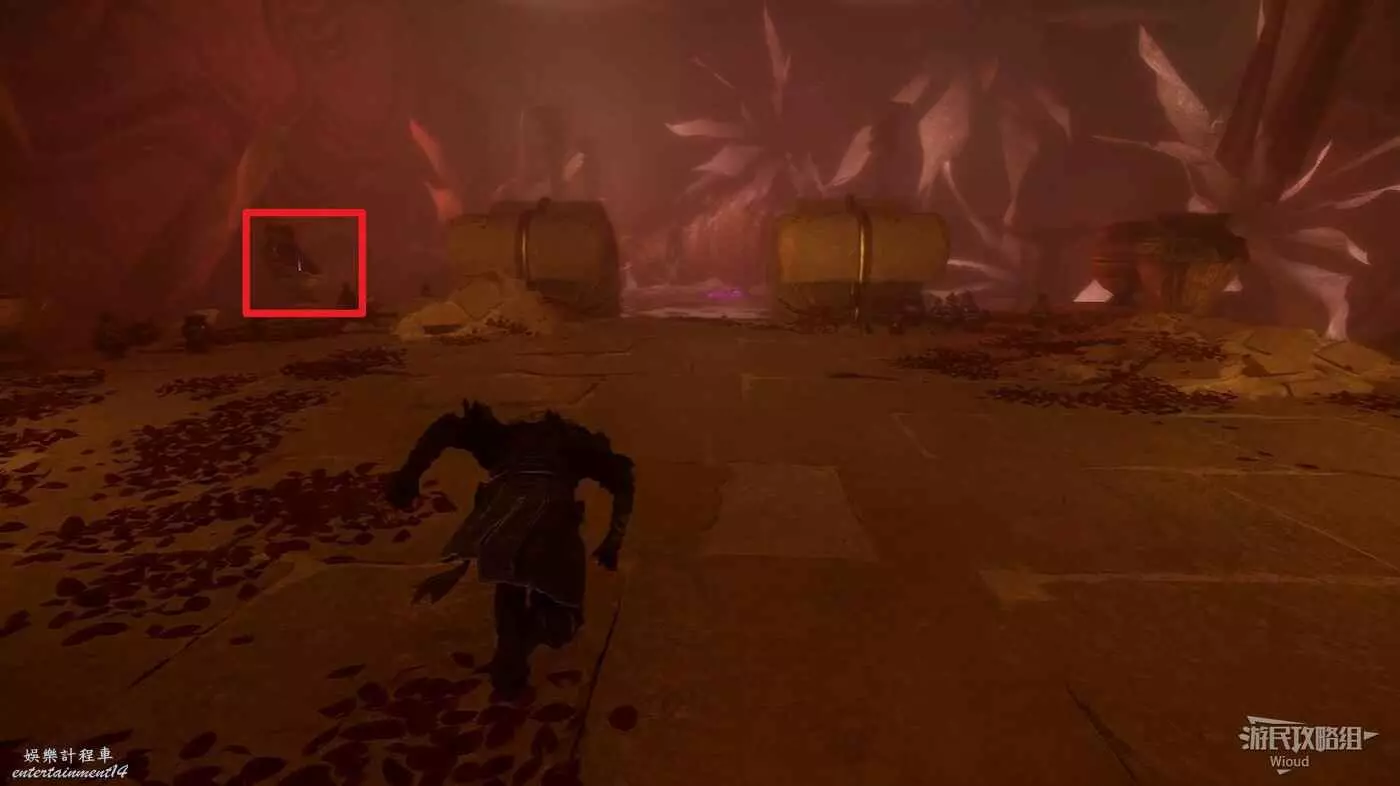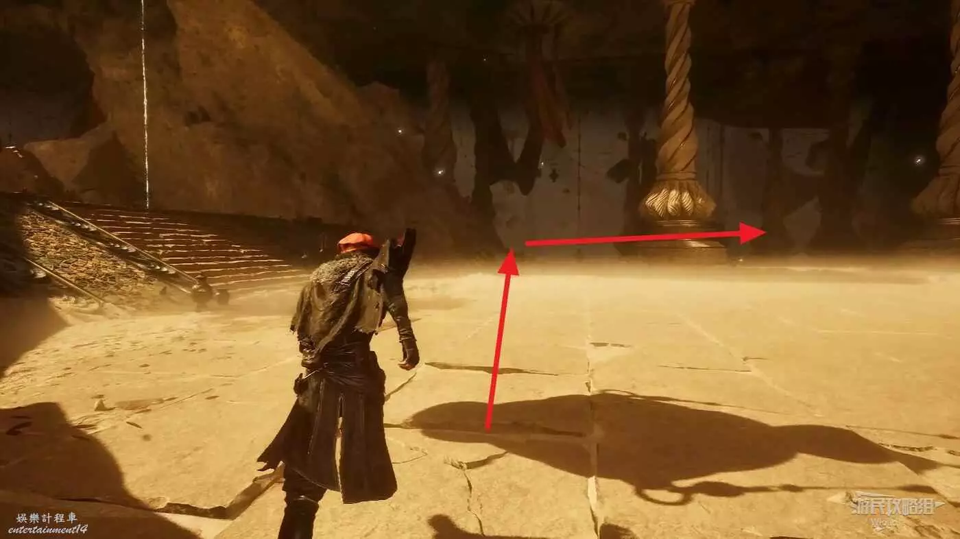 轉頭面對旗幟,左側有個特別大的拱門,過去途中可以撿到一個【精力碎片】。