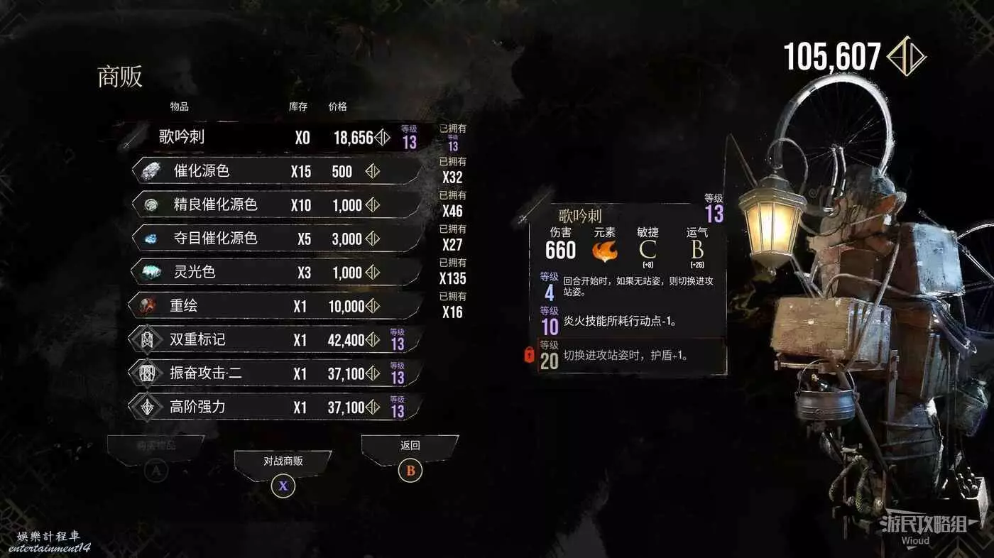 盡頭可找到對應的板塊與一個商人,商人處可購買武器【歌詠刺】、符紋【雙重標記】、【振奮攻擊·二】與【高階強力】。