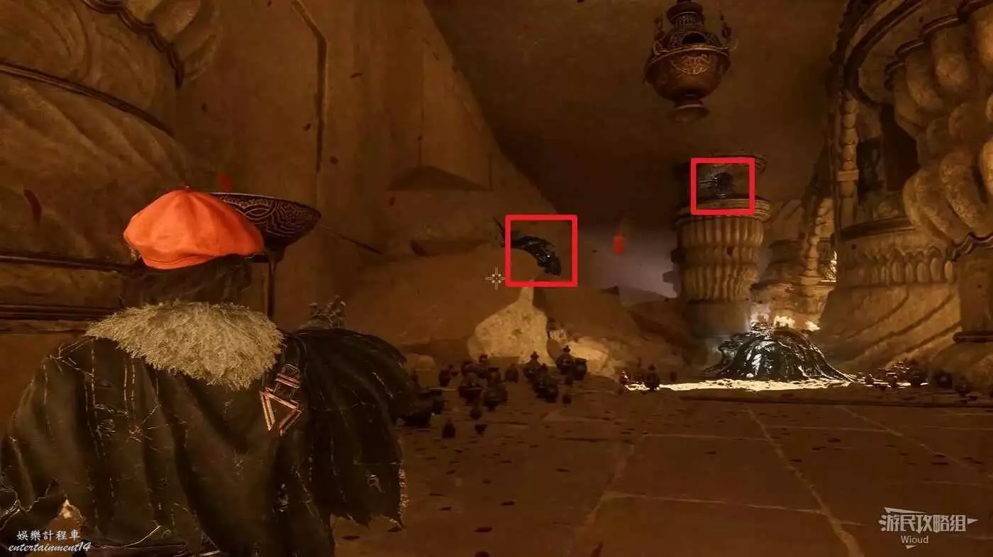 回到繩索點往左走,通過鉤爪移動到對面平台,穿過一段向下的樓梯往左走,可找到一個繪籠。