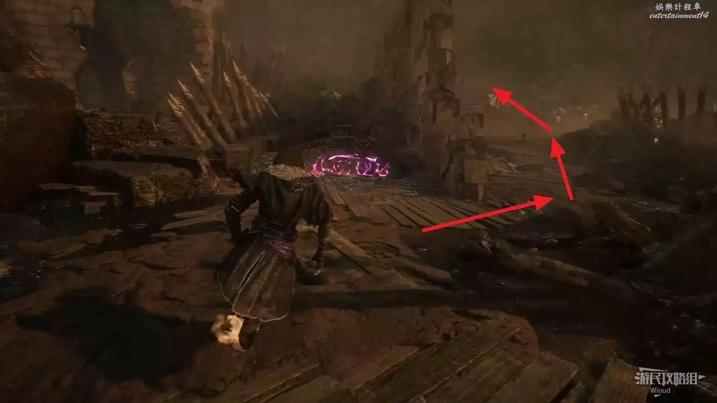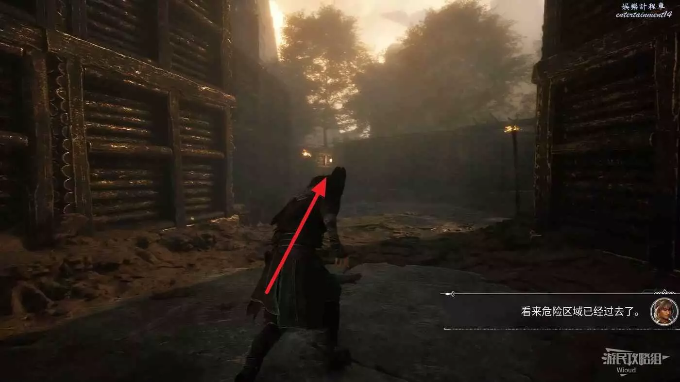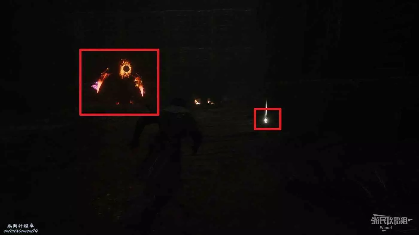 沿路走到一個十字路口,路口中間還有個黑影,此處左拐可啟動旗幟【戰場】。