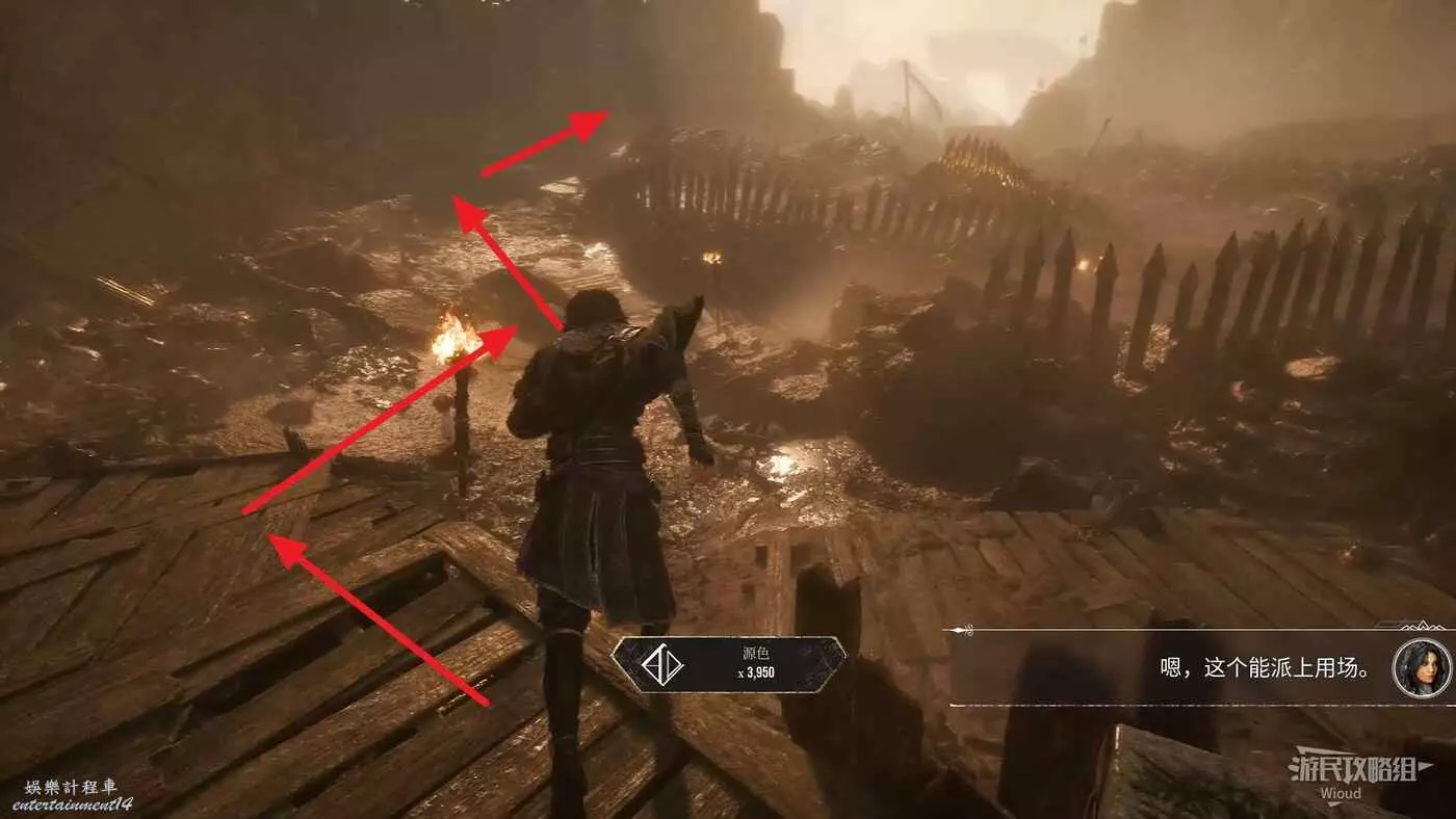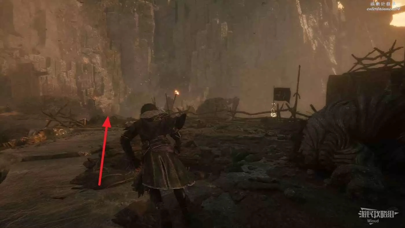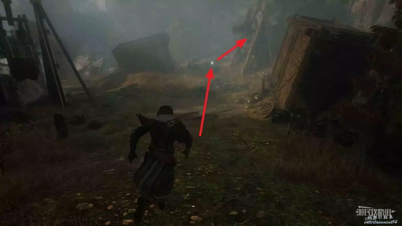 沿路走到一個十字路口,路口中間還有個黑影,此處左拐可啟動旗幟【戰場】。
