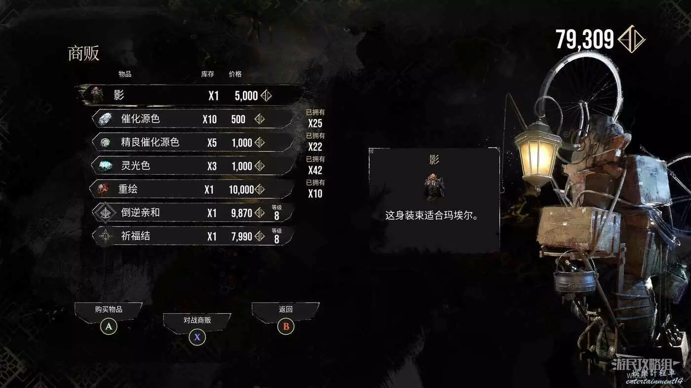此商人處可獲得瑪埃爾的的【影】裝束,符紋【倒逆親和】與武器【祈福結】。