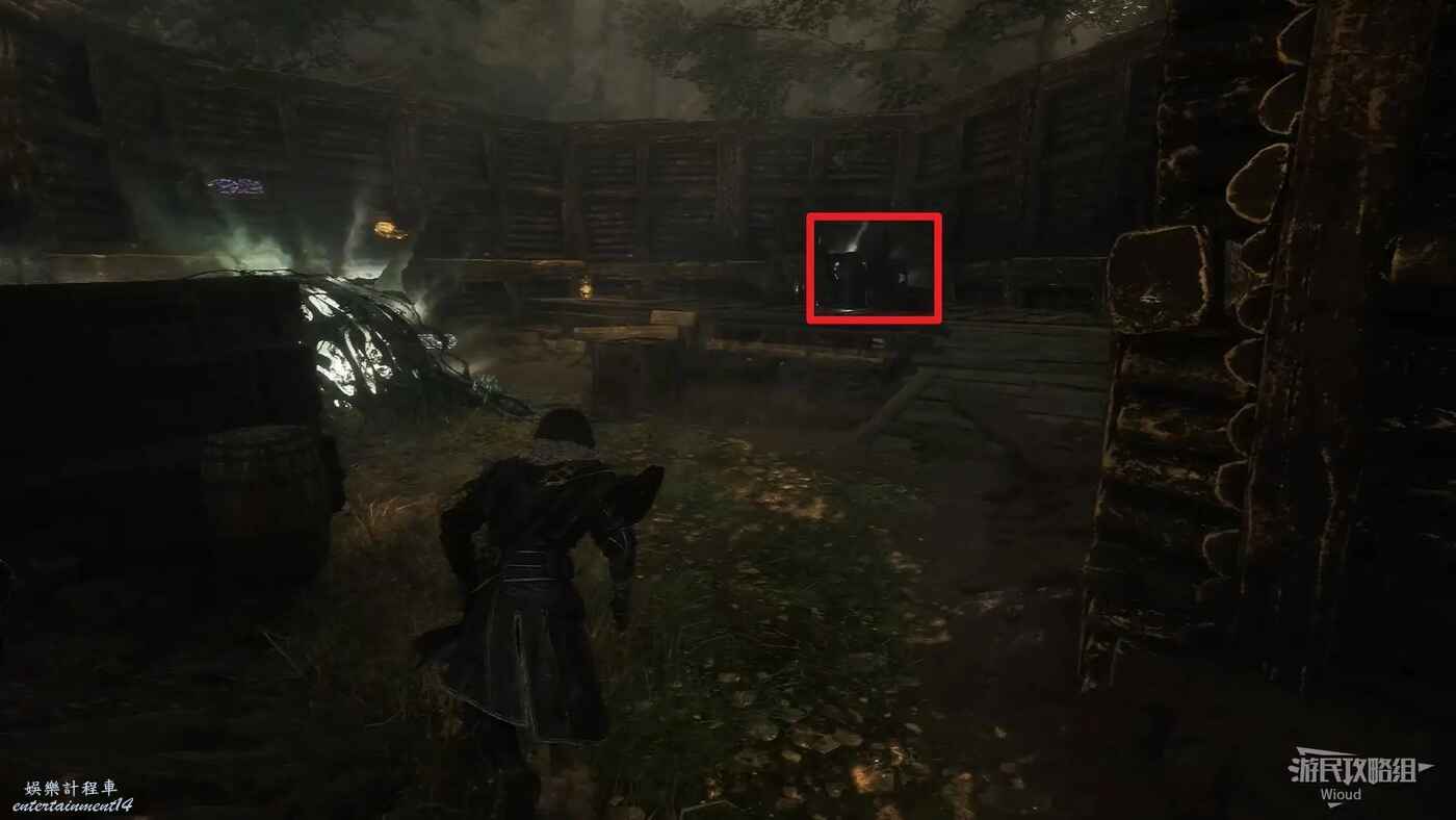 這個敵人右邊角落有幾個破爛木箱子,破壞掉箱子後再後方撿到一個【精力亮色碎片】。