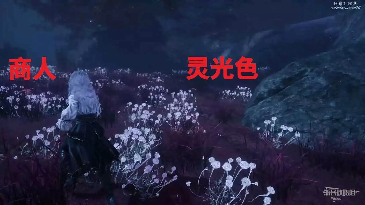通過旁邊台階上去,右側有【靈光色】可拿,直走右拐找到一個商人。