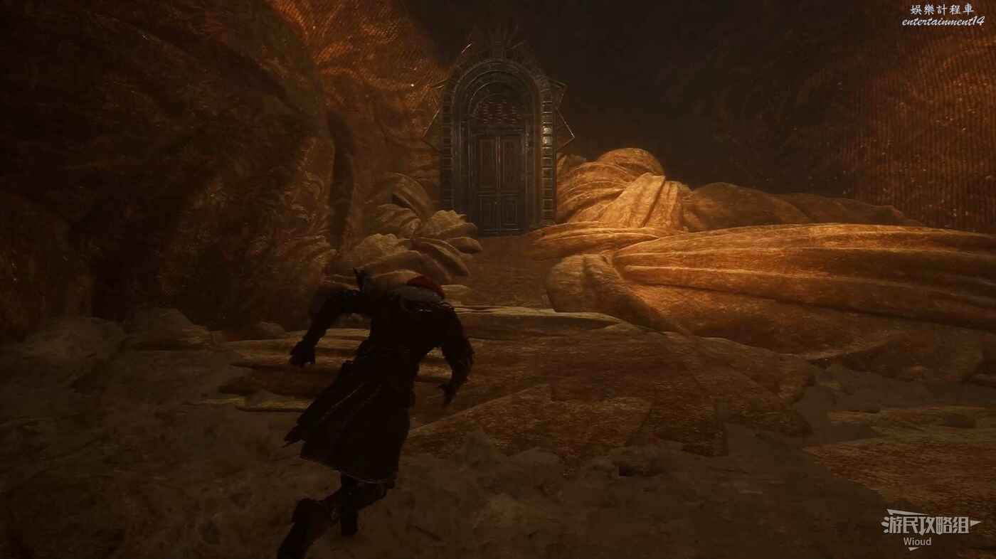 走主路,先與前面黑影對話,往左前方的大門走,大門左側可撿到一個【靈光色】。