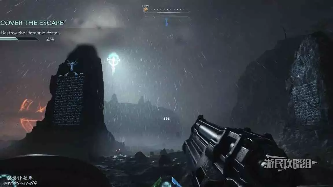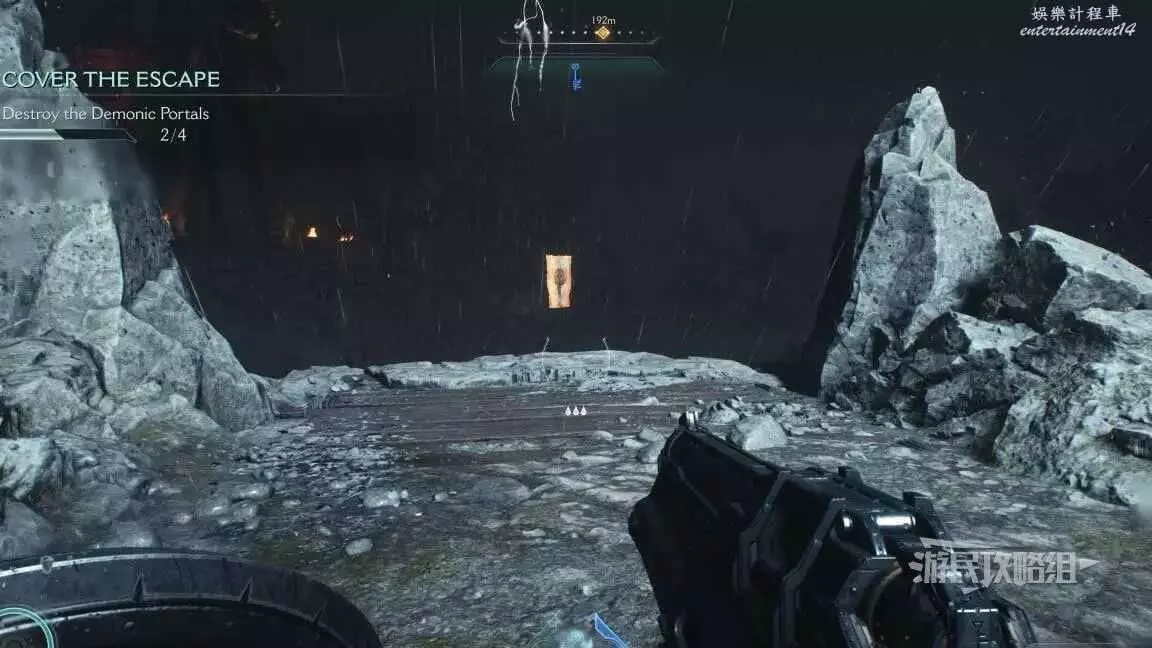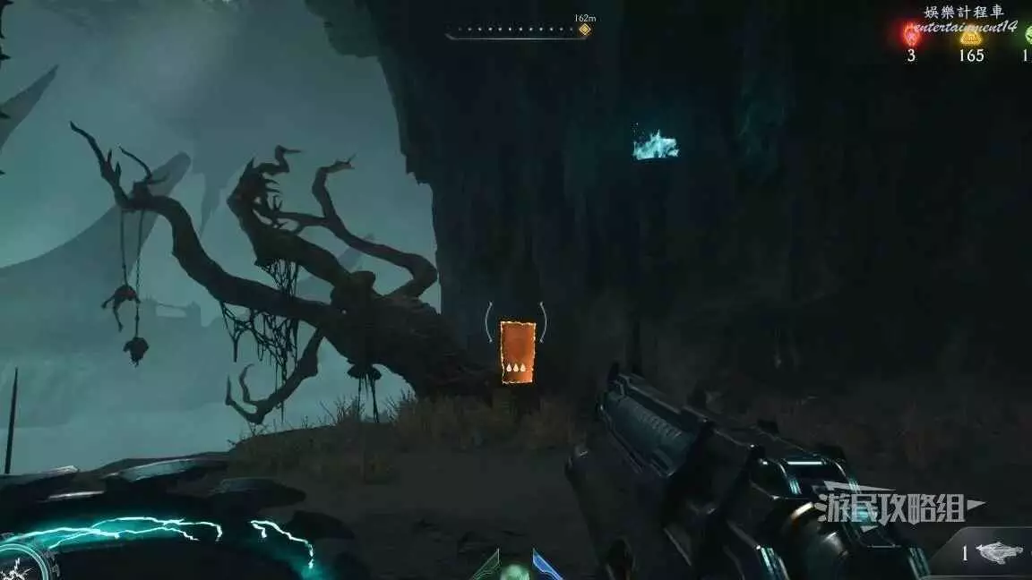 在第一章摧毀4個傳送門時,其中一個傳送門後面有一條小路和一面可攀爬牆壁,爬到上層即可拾取。
