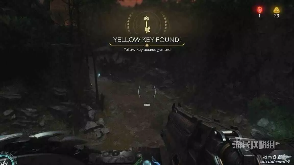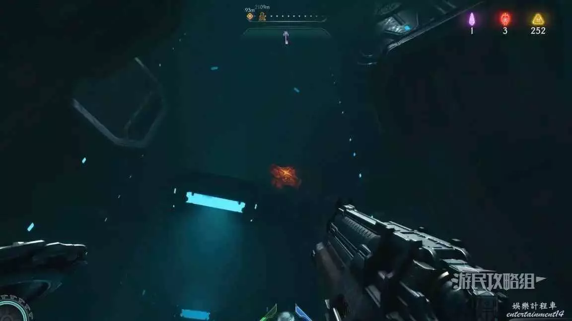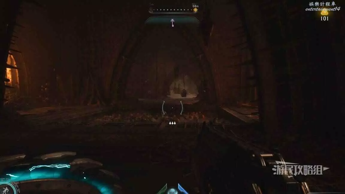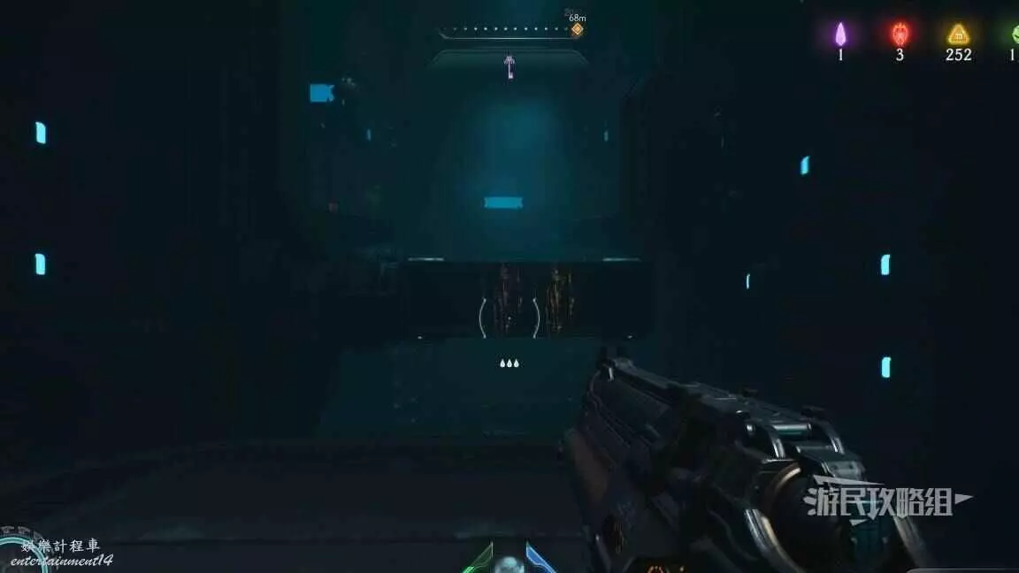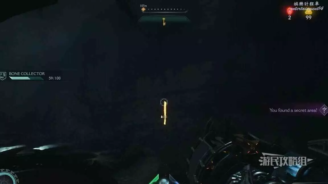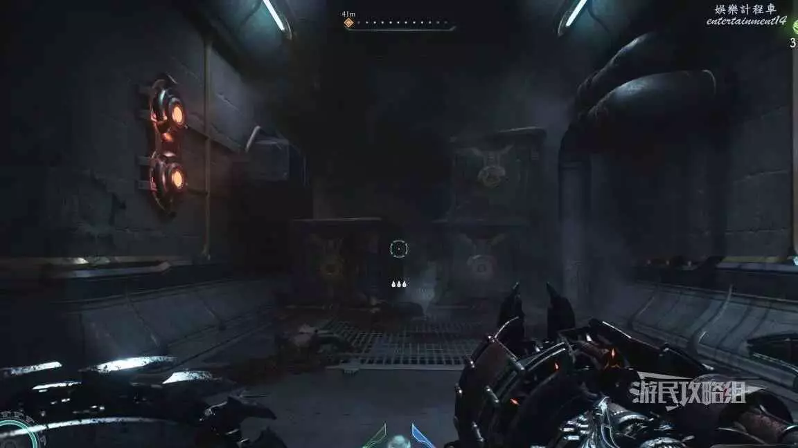 在第二章開頭需要拉動一個拉杆開啟一扇門,進門後直走就能到達下一個區域,經過兩側有綠色光條的門時,左轉跳過箱子就能進入秘密區域,百科條目就在這個秘密區域裡。